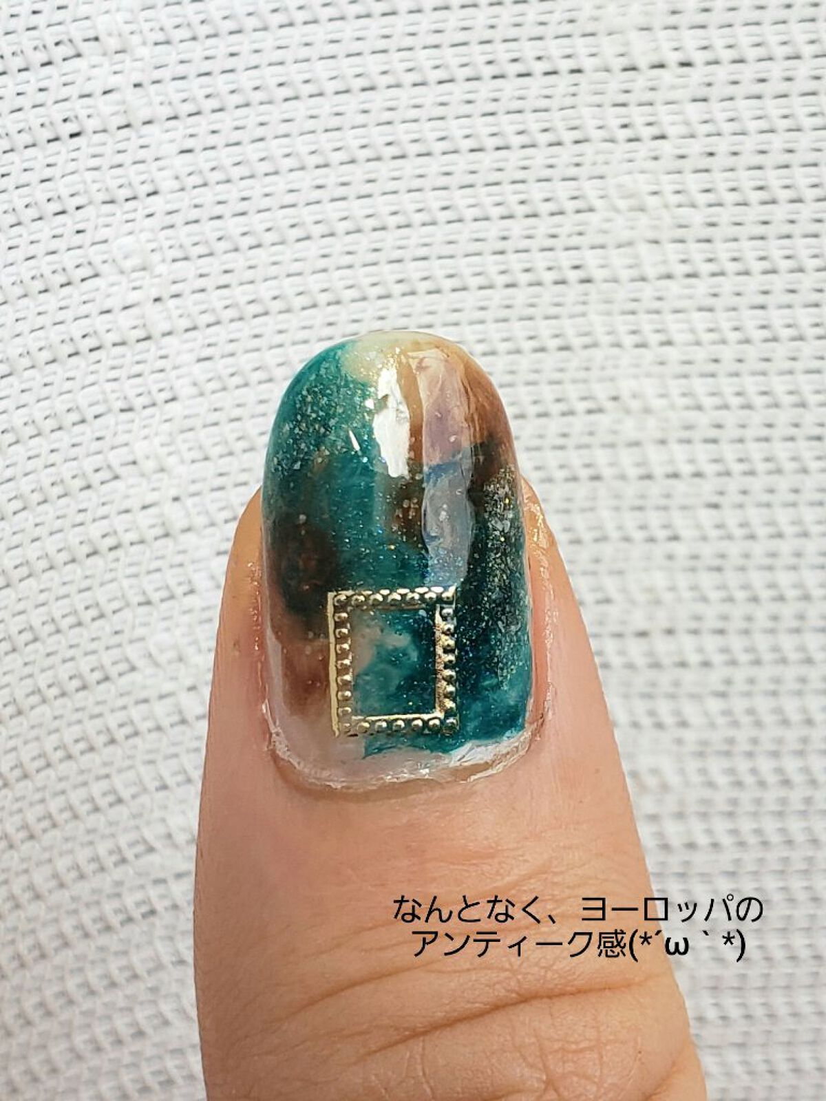 今日は大人っぽニュアンスネイル🖤 青緑とブラウンで、ぐっとクールな仕上がり! 肌馴染みのいいピンク系も可愛いけど、たまにはこういうのもやりたい。 ✼••┈┈••✼••┈┈••✼••┈┈••✼••┈┈••✼ 【使ったもの】 ネイルホリック WT038 リンメル スピーディフィニッシュ 702 パラドゥミニネイル BR08 松 CANMAKE N66 ピクシーダスト paプラス ピールオフベースコート ネイリスト クイッククリスタルコートⅡ GENEネイル トップコート(ニュアンス用) ネイルシール2種(SHEINにて購入) ストーン(SHEINにて購入) 【やり方】 ⭐️ニュアンス(親指・薬指) 1.WT038を2度塗り 2.リンメル702を点置きして、トップコートでぼかす 3.松をリンメル702に重なるように点置きして、トップコートでぼかす 4.バランスを見てピクシーダストを薄く重ねる 5.速乾トップコートを1度塗り 6.シールを貼る 7.トップコートで仕上げ 🔹ポイント ニュアンスは1色ずつやったほうが、落ち着いて作業できる ⭐️ラメワンカラー(中指) 1.WT038を1度塗り 2.ピクシーダストを2度塗り 3.速乾トップコートを1度塗り 4.シールを貼る 5.トップコートで仕上げ 🔹ポイント ピクシーダストの前にWT038を塗っておくと、発色がきれい ⭐️ワンカラー(人差し指・小指) 1.人差し指は松を3度塗り 2.小指はリンメル702を2度塗り 3.速乾トップコートを1度塗り 4.ストーンを配置 5.トップコートで仕上げ 🔹ポイント ニュアンスで使った色を使う ✼••┈┈••✼••┈┈••✼••┈┈••✼••┈┈••✼ ニュアンスの指には星座のシールを使おうかと思ってたんだけど、既に十分華やかだったから路線変更w シンプルな四角のシールを貼ってみた。 初冬にぴったりの色で、大人っぽい雰囲気にできたから大満足! 心残りは、乾く前にストーンを引っ掛けて、ポリッシュが抉れちゃったこと。 うまくいってただけに、悔しい~ こういうことがあると、チップ派に転向したくなっちゃうわね。 #セルフネイル #ネイル記録