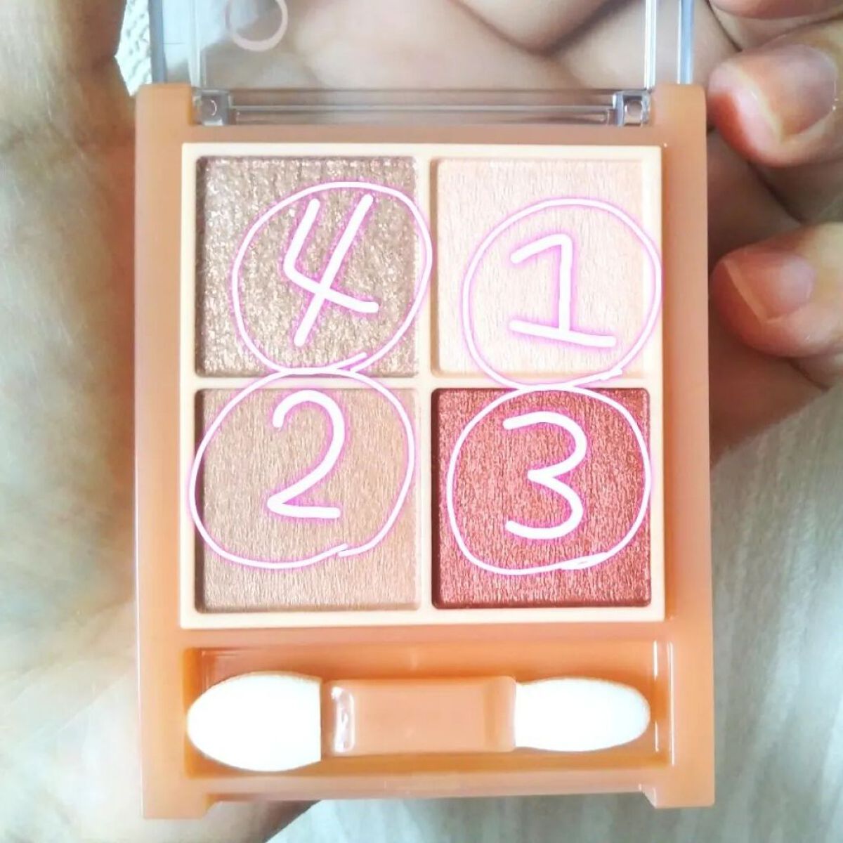 02番シャンパンベージュは… ベージュと少しオレンジを合わせたような カラーかなと思いました🤔 04番オーロラピンクは… 淡いピンクカラーがベースになっていて ゴールド、グリーン、パープルなどの 多少ラメが入っています😳✨ オーロラピンクはほぼ色味は無いので、 ラメカラーに使うのが良いと思います🤔 02番シャンパンベージュは 細かいパール?ラメカラーがおしゃれな色味で 派手すぎない仕上がりも良いなと思います😊 私は下まぶたに色味がのりにくいのですが😇 しっとり濡れツヤみたいな質感と使い心地が 下まぶたにのりやすくて乾燥もしないので気に入ってます😏