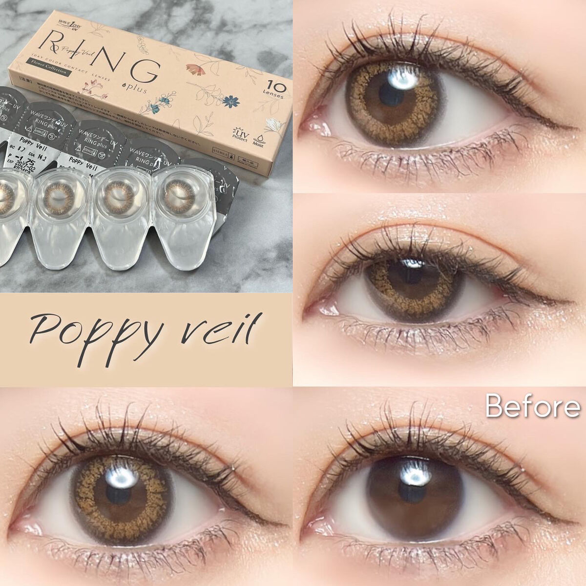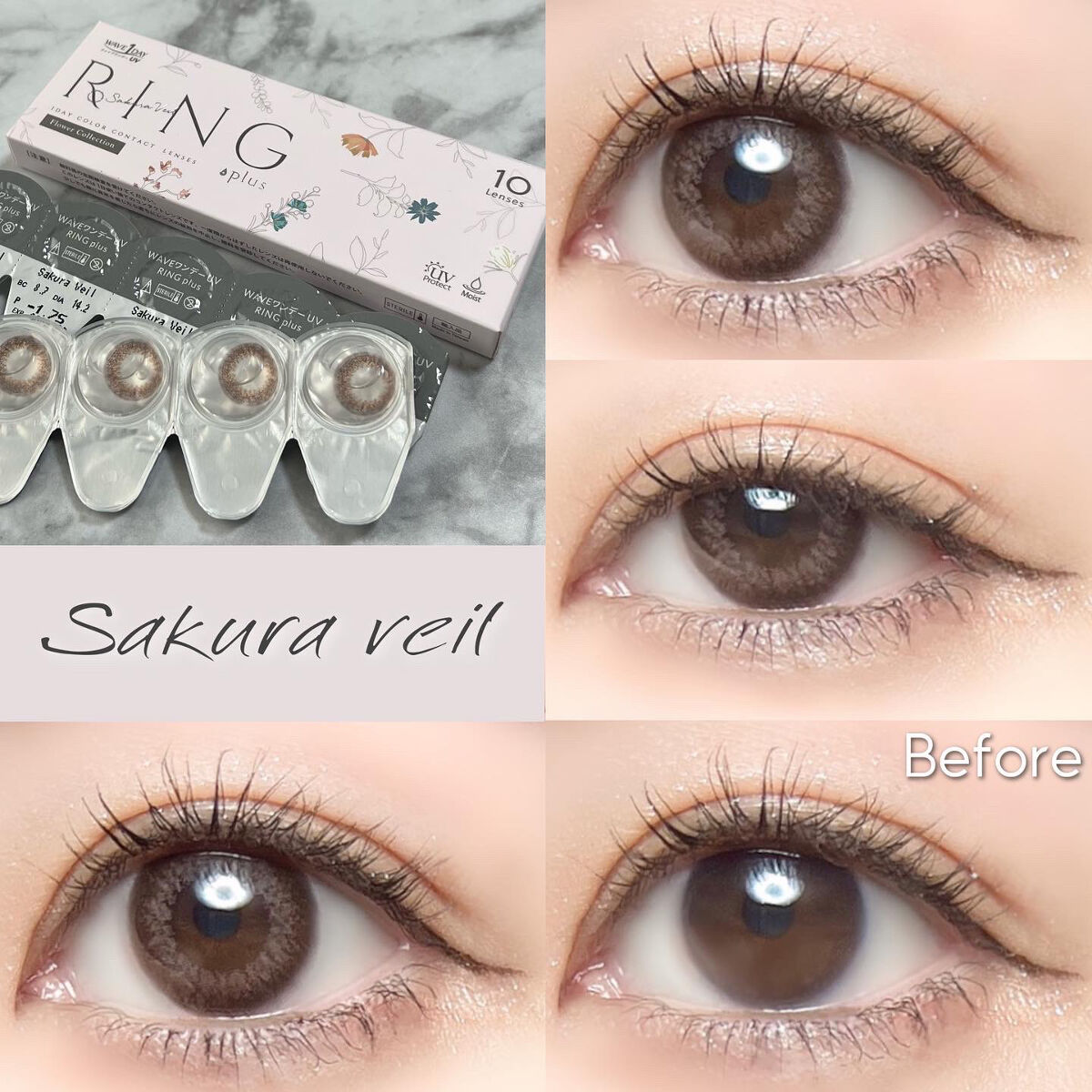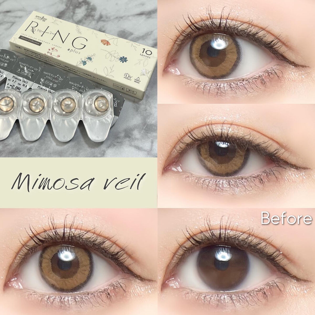 10枚入り1000円以下で買える色素薄い系プチプラカラコン♡瞳に彩りを与え、ちょっとだけ瞳を変えるシンプルで日常使いしやすいカラコン【WAVEワンデーUVリングplusフラワーコレクション】☾MimosaVeil(ミモザベール)DIA...