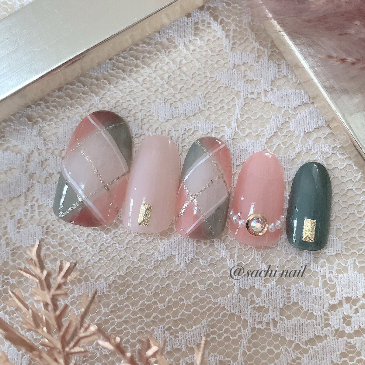 ワンカラーでも指ごとに色を変えるだけでオシャレに見えます💕 画像のようにゴールドラインとストーンを少し足すだけで華やかさがアップ🥰 何度かご紹介したことのあるスポンジで作るグラデーションです✨ スポンジを使うことで境目が綺麗に馴染んでくれます💕 アルミホイルの上でブラウンとトップコートを1:1くらいで混ぜたものを、トップコートのハケに取って3箇所に塗るだけ👌 事前に混ぜたものを塗ることで、爪の上でぼかすより簡単に出来ます💕 ベースカラーが乾く前に点置きしてぼかすことで綺麗にぼかせます✨ スピードが大事なので、使うポリッシュのキャップは全て開けておきましょう😊 天然石のラインはガタガタの方がより天然石っぽく見えるので、ラインを描くのが苦手な方でも大丈夫🙆♀️ 難しそうに見えて、やってみると意外と簡単に出来ます♡