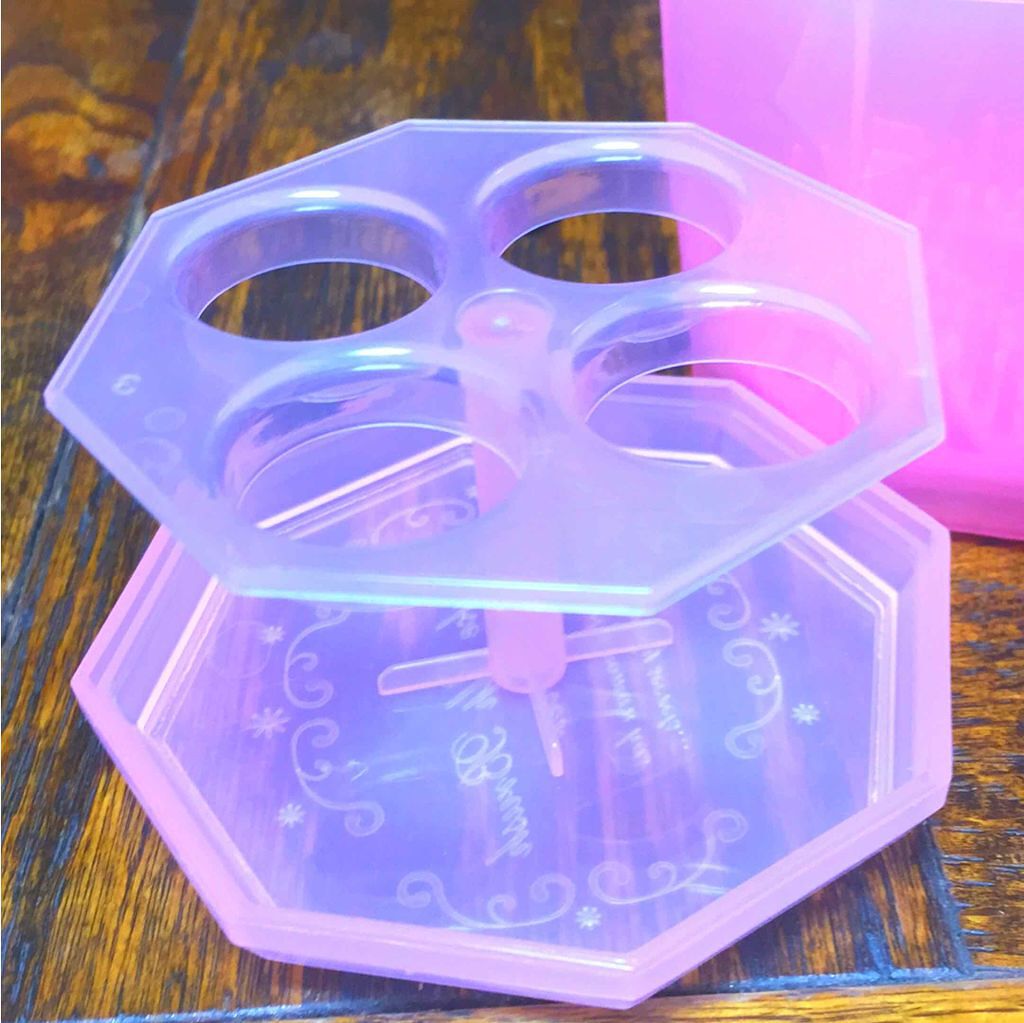 - メイクブラシの皮脂や汚れをきれいに落とします。 くるくる回すだけです。 ブラシの汚れがみるみる落ちます。 洗浄板の中央付近の小さな突起はアイブロウブラシなど毛先の短いブラシも洗えます。
