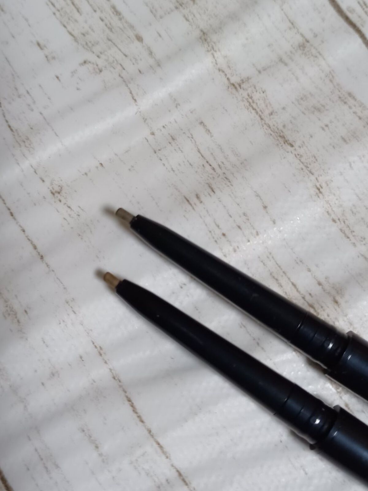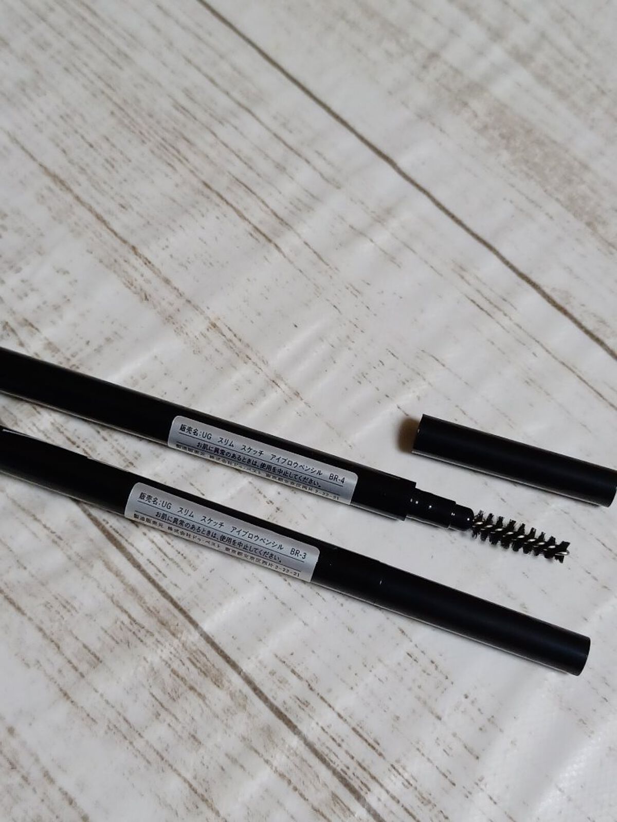 コスパ良し、発色良しのアイブロウペンシル! ずっとUGのを使っていて、新しくでたUGTも試してみたので比較しました! UGT アイブロウペンシル GD 01cはUGと比べると芯は太めで、しっかり発色してくれます! また折れにくいです🙆♀️ 100均とは言えど、発色も持ちもいいのでおすすめです!