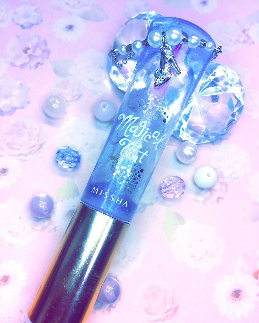 (💄)ミシャマジカルティント(スカイブルー)(💰)¥1000(🗣)ティントって書いてあるけどグロスとして使ってますパキッとしてる赤の上に乗せるとこのティントの色が体温とか水分量?で変わって少し青みピンクになるので若干柔らかく見えますラメが大き...