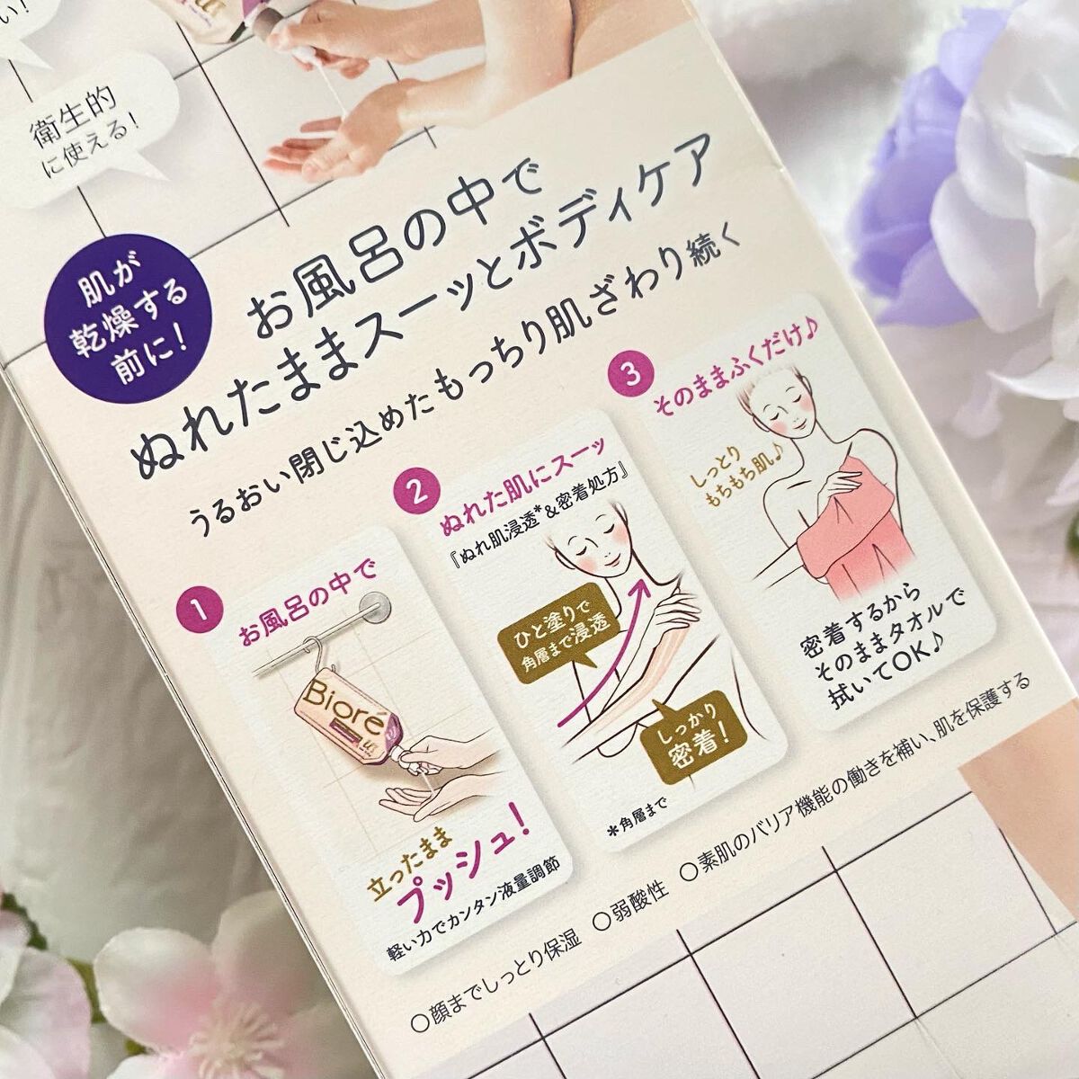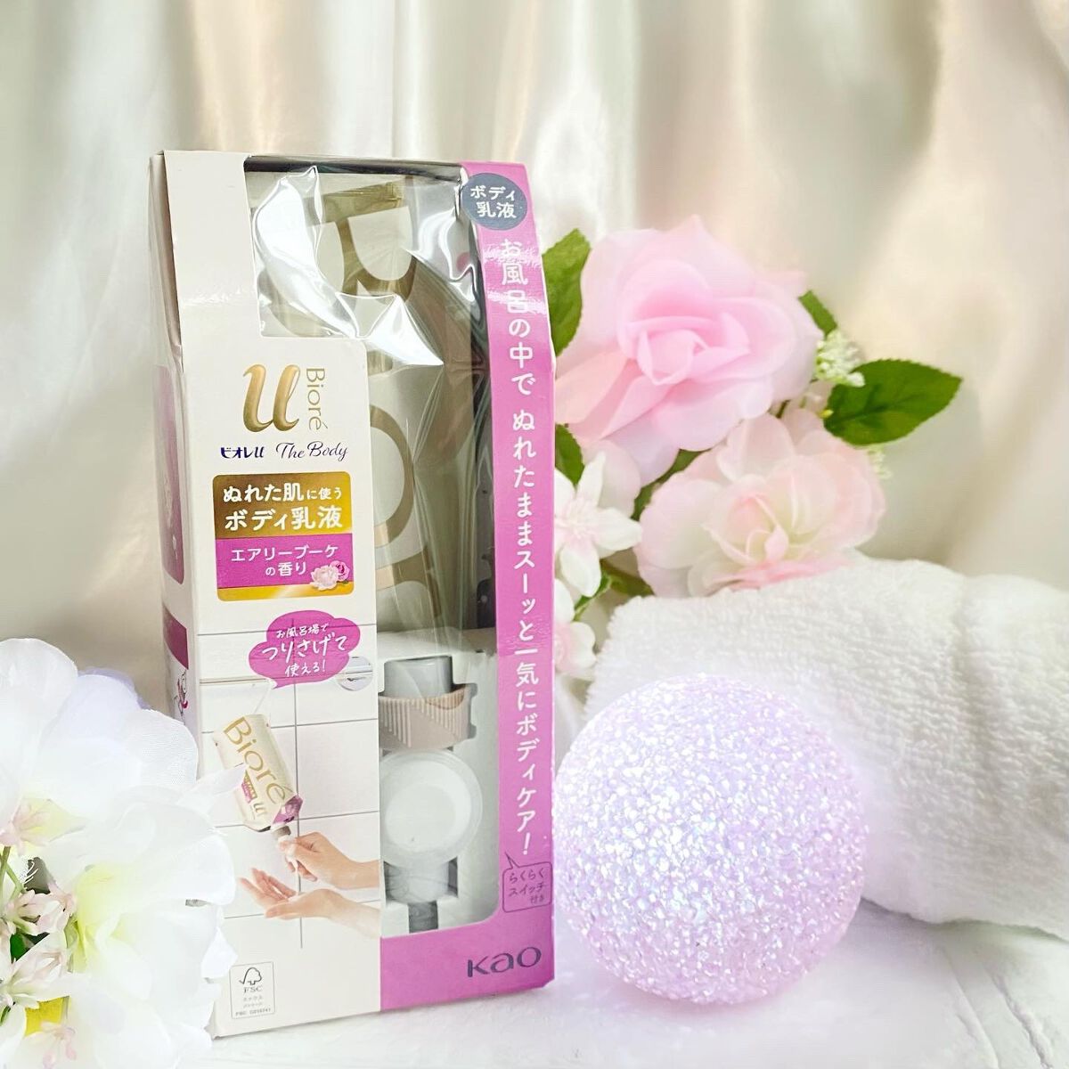 「ビオレuザボディぬれた肌に使うボディ乳液エアリーブーケの香り」服を着てる状態で全身にクリーム塗るのって面倒くさくないですか?この商品は、お風呂上がりに肌が濡れたまま使えて、とにかく便利です!テクスチャーは伸びが良く、少量でもスルスル全身に広...