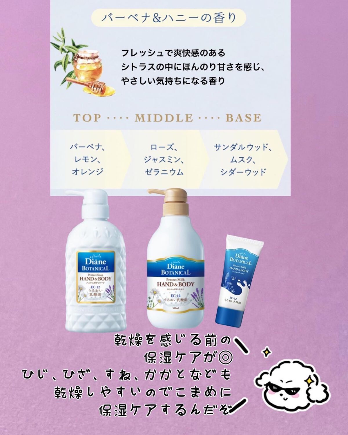 【ボタニカルハンド&ボディソープうるおいビタミンC/ダイアン】◆◇Item◆◇10種類のオーガニックボタニカルエキスとオリーブ洗浄成分配合で、敏感肌をいたわりながら優しく洗える90%以上が天然由来成分*¹のボディウォッシュです。うるおいビタミ...