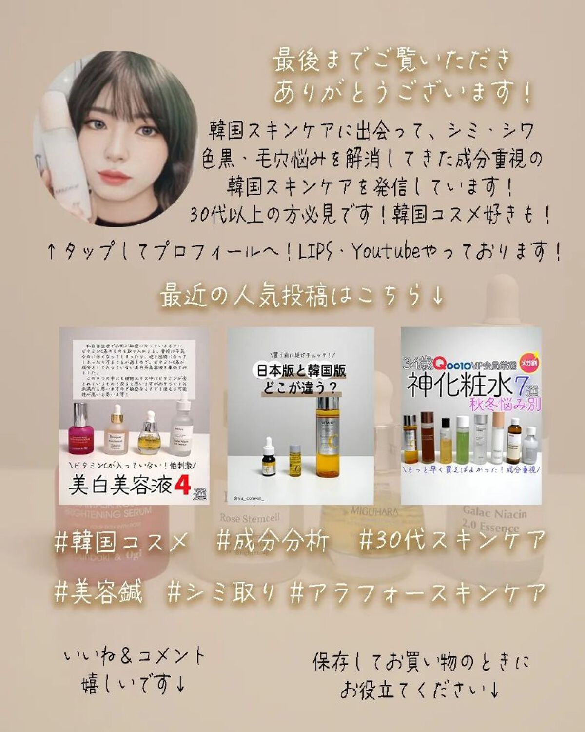 35歳化粧品検定1級&成分スペシャリストが、黒ギャル、シミ・シワ・くすみを克服してきた成分重視のスキンケア選びをほぼ毎日投稿しております✩.*˚ 好きな韓国スキンケアブランドは、Bonajour、cosrx、celimax、Real Barrierです! トラネキサム酸美容液