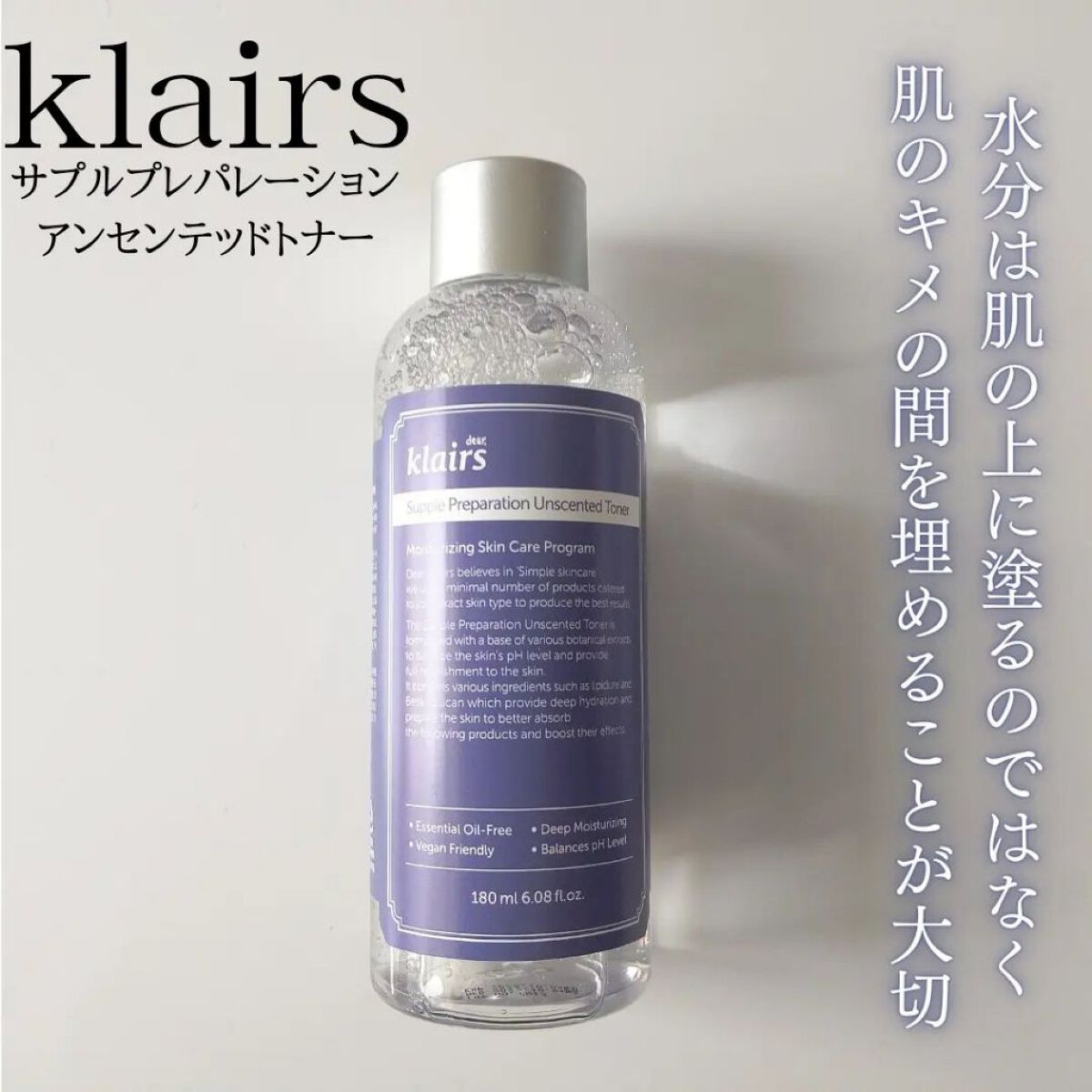 買ったままになっていたKlairs(クレアス)の「サプルプレパレーションアンセンテッドトナー」を使ってみました。こちら敏感肌のために作られた低刺激オイルフリー化粧水。エッセンスのように浸透力が高いのが特徴なんだとか。クレアスのトナーはエッセン...