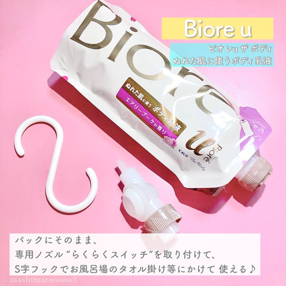 「ビオレuザボディぬれた肌に使うボディ乳液エアリーブーケの香り」服を着てる状態で全身にクリーム塗るのって面倒くさくないですか?この商品は、お風呂上がりに肌が濡れたまま使えて、とにかく便利です!テクスチャーは伸びが良く、少量でもスルスル全身に広...