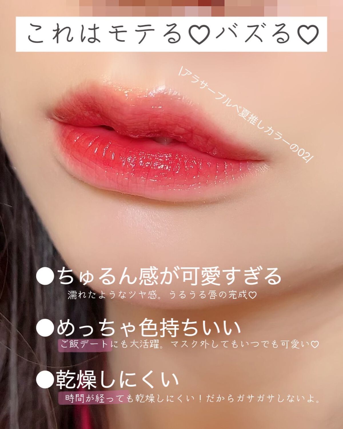 | 口紅・グロス・リップライナーランキング第45位 | 乾燥しにくく、艶感をキープしてくれて、ティント特有の色持ちも良く、ぷるっとしたジューシーな唇に仕上がります | 詳細を見る | |