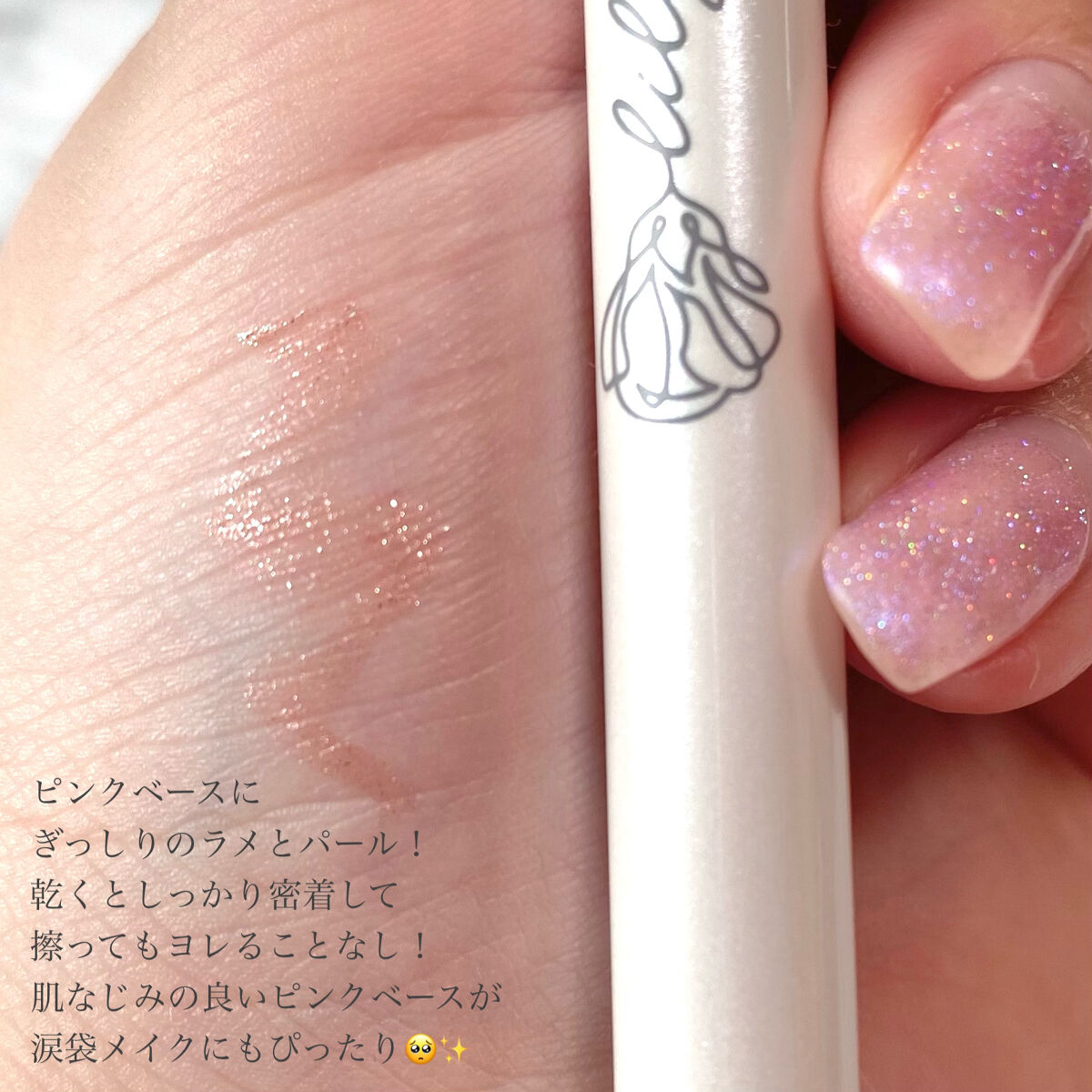 - “描けるパール” きらめき長時間つづく耐久&パールinアイライナー ●涙袋やハイライトに#描けるパール 限定1色 ●パールがきれいに見えるクリアイルミナベース処方 ベースが透明でパールがきれいに見えるから、アイシャドウのように大粒パールがきらめきます。 ●高密着&ウォータープルーフ処方 汗・皮脂・涙・こすれに強く、1日中(※1)ラインをキープ! なのにお湯でするっと簡単オフ。 ※1 日中の活動時間。当社調べ。効果には個人差があります。
