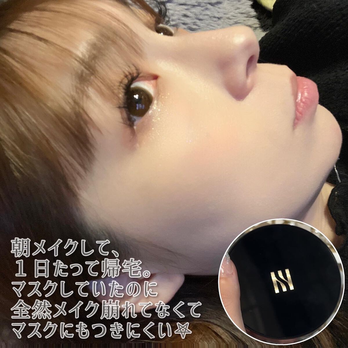 触ってみるとふっかふかで気持ちいい! クッションファンデのパフなので、 しっかりはしているんだけど 表面がふかふか柔らかめで 優しい触り心地が嬉しい🧸🌸 塗ってみると、水々しいので 保湿力はありつつサラサラに✨ 塗ってる感がないのに毛穴レス!!! ニキビなど気になる部分は ぽんぽんと2度のせしたら カバー力もめっちゃある🙆♀️🙆♀️ 水々しいので乾燥も感じにくく 使い心地とても良い( ・ω・ )/💓 1日さんざん喋り倒して、 帰宅したマスクには… 結構ファンデーションついてたけど ファンデ落ちたなぁ💦って感じの むけた感は全然ないので不思議🙄🌸