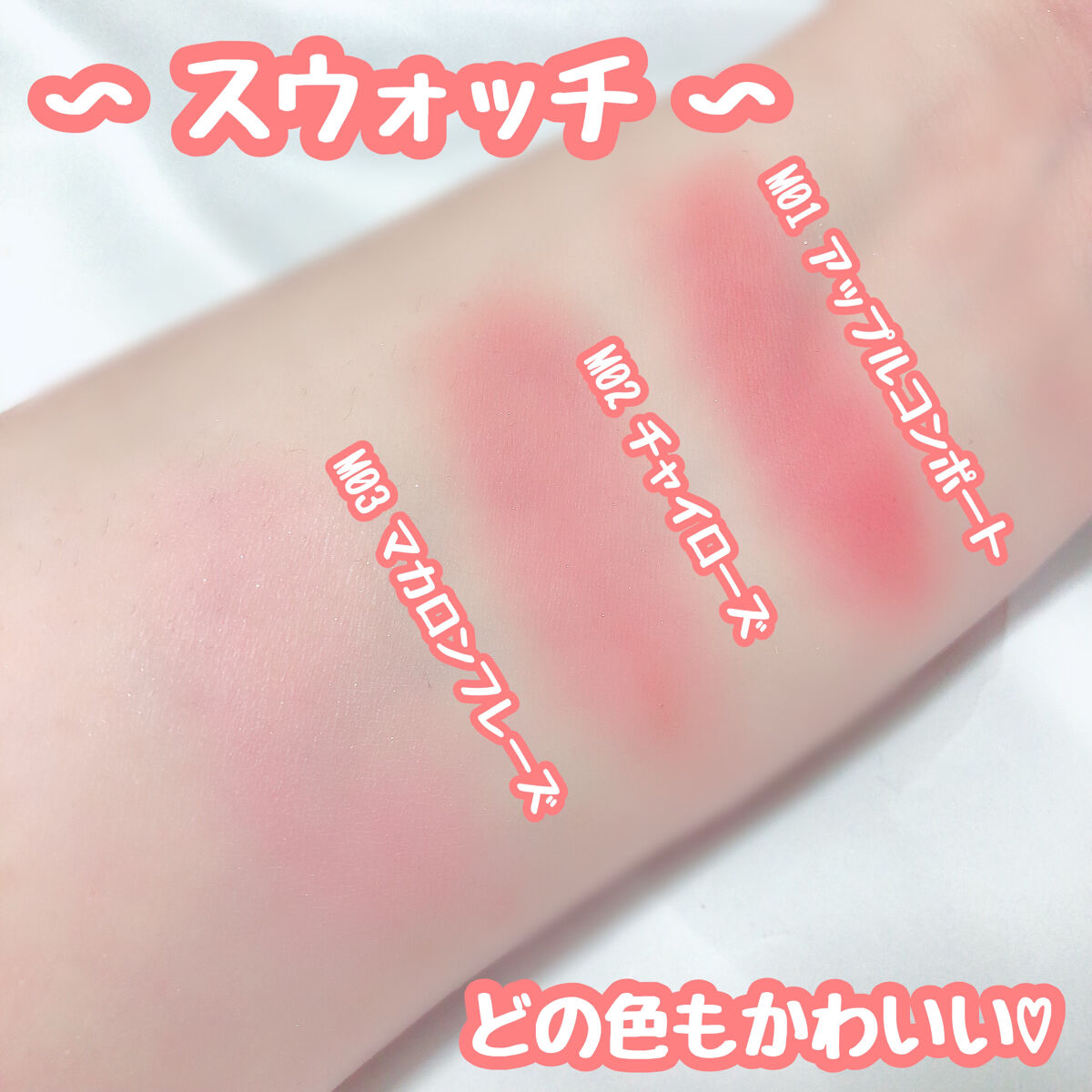 - 透けたマット仕上げ♡軽い質感のふわっ生チーク ムースのようにふわっと軽い質感♡ お肌の上で溶け込むようにふんわり色づき、軽やかな血色感を与えてくれます。 塗るとサラッとした仕上がりで長時間ヨレにくい! 汗・皮脂・こすれに強いので、マスクメイクにもオススメです。 ※充填時に入った気泡が容器底面から点や線状に黒または白く見えることがありますが、品質上問題はございません。 ※指で強く押しすぎると、中身が崩れる可能性がございますので、ご注意ください。 ※中身の片寄りの原因になりますので、落下などの強い衝撃を与えないでください。