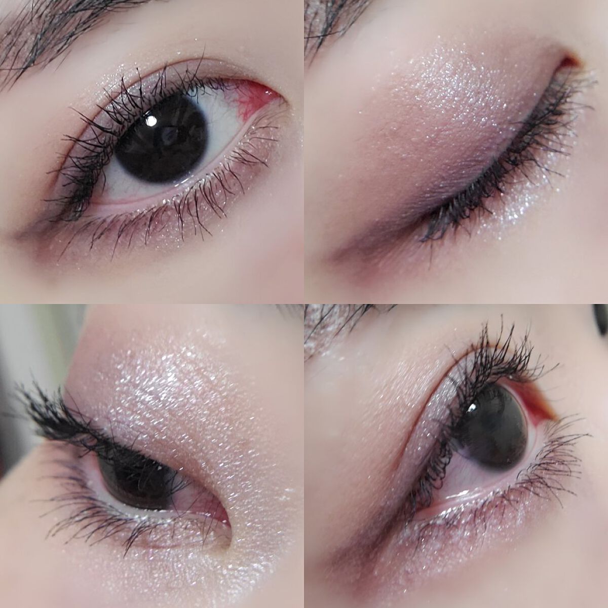 カメラだとかなり青く写りやすいのですが 肉眼だと3枚目のような青みのあるグレーに発色するので ちゃんと瞳を青くしたい方は物足りなさを感じるかもしれませんが 派手過ぎず、ナチュラル過ぎずでとても可愛いです✨ 乾燥はほとんど気になりませんでした。 ブルベメイクとの相性が良いので活躍してくれそうです☺️ アイシャドーは【rom&nd/ベターザンパレット(DUSTY FOG GARDEN)】。 上瞼中央と涙袋の青ラメは【JUDYDOLL/モネドリーム20色アイシャドウ】。