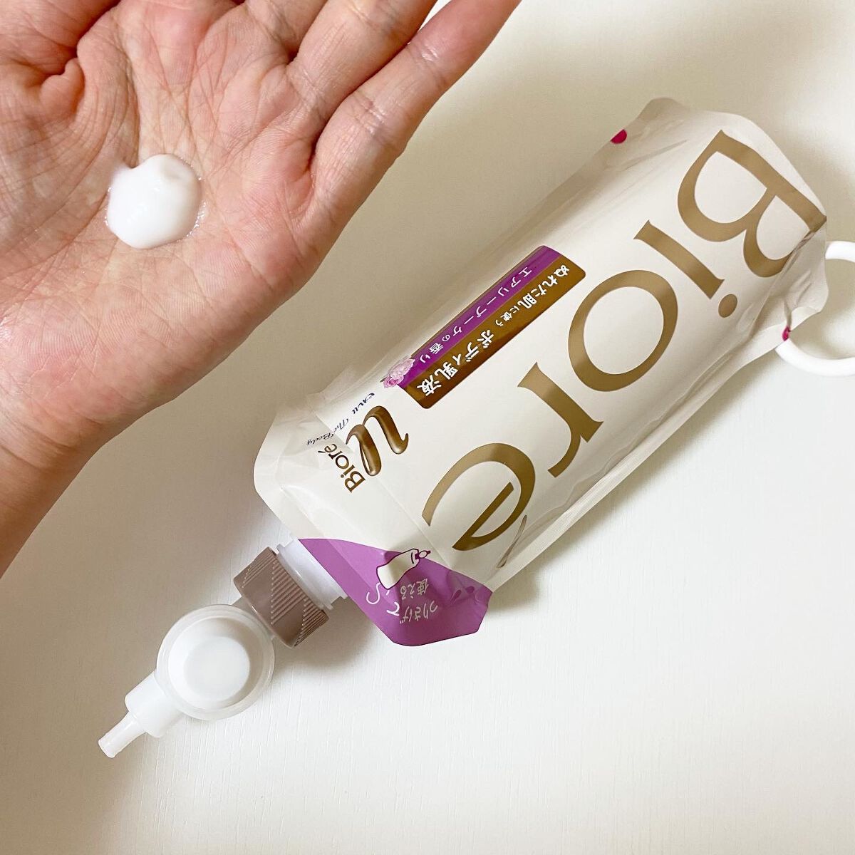 「ビオレuザボディぬれた肌に使うボディ乳液エアリーブーケの香り」服を着てる状態で全身にクリーム塗るのって面倒くさくないですか?この商品は、お風呂上がりに肌が濡れたまま使えて、とにかく便利です!テクスチャーは伸びが良く、少量でもスルスル全身に広...