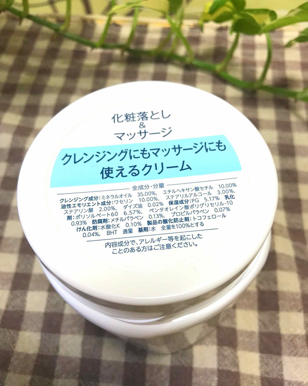 - クレンジング成分:ミネラルオイル 35.00% , エチルヘキサン酸セチル 10.00% 油性エモリエント成分:ワセリン 10.00%, ステアリルアルコール 3.00%, ステアリン酸 2.00% 保湿成分:PG 5.17% 乳化剤:ポリソルベート60 6.57%, ペンタオレイン酸ポリグリセリル-10 0.93% 防腐剤:メチルパラベン 適量, プロピルパラベン 適量 pH調整剤:水酸化K 適量 製品の酸化防止剤:トコフェロール 適量 成分の酸化防止剤:BHT 適量 基剤:水 全量を100%とする