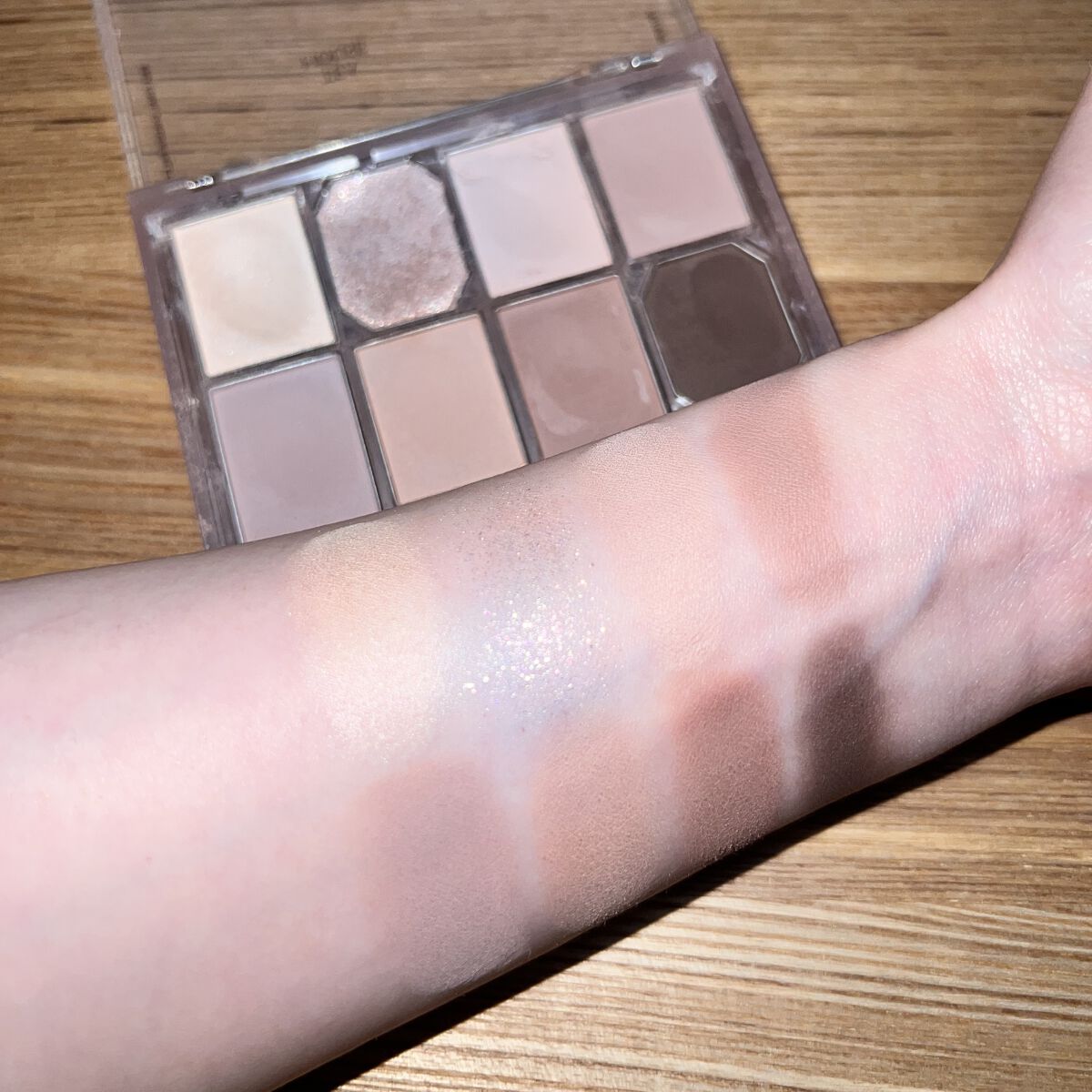 秋冬にぴったりのくすみカラーで比較的どの人でも使いこなせそうで、カラーメイクに寄りすぎないピンクブラウンパレットです ラメは細かめのラメカラーとチラチラ光るピンク系ラメとなっていて本当可愛い🩷 クリスマスデートはこのアイシャドウパレットつかう!!決まり!