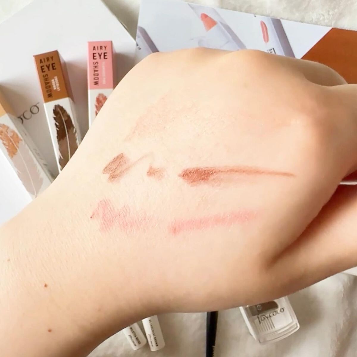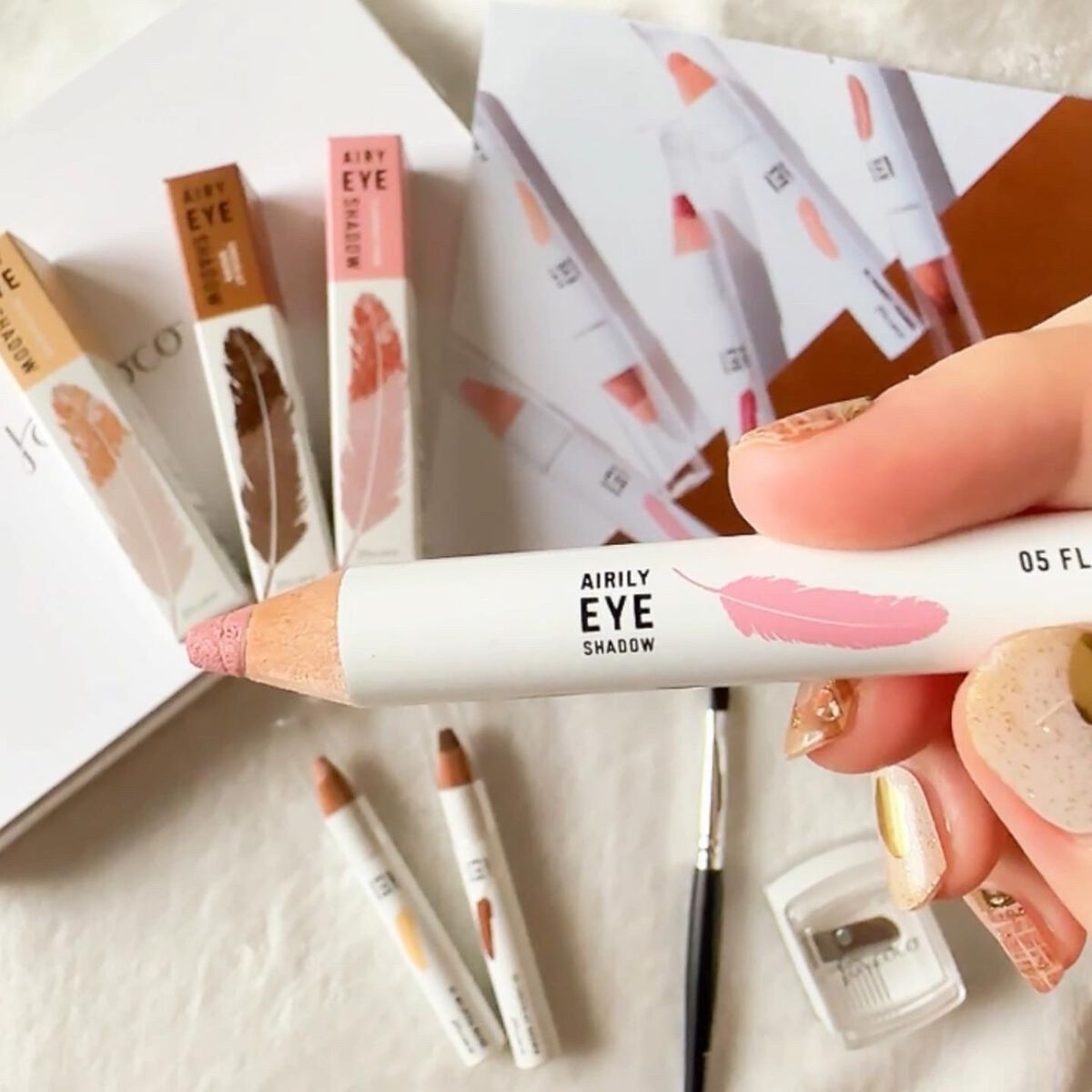- スティックなのにパウダー。1本で思い通りのアイメイクが自由自在に描ける「ジョイココ エアリーアイシャドウ」。1本でアイメイクが完成できることを目指した新体験のアイシャドウ。指で優しく撫でるだけで好みのグラデーションを演出し、スティックだから気になる部分はピンポイントで狙えます。パウダーを優しく芯に閉じ込める特殊な技術で、ふんわり羽のように軽いエアリー感のある書き心地を実現。アイシャドウだけではなく、涙袋・ハイライト・チークにも使えます。