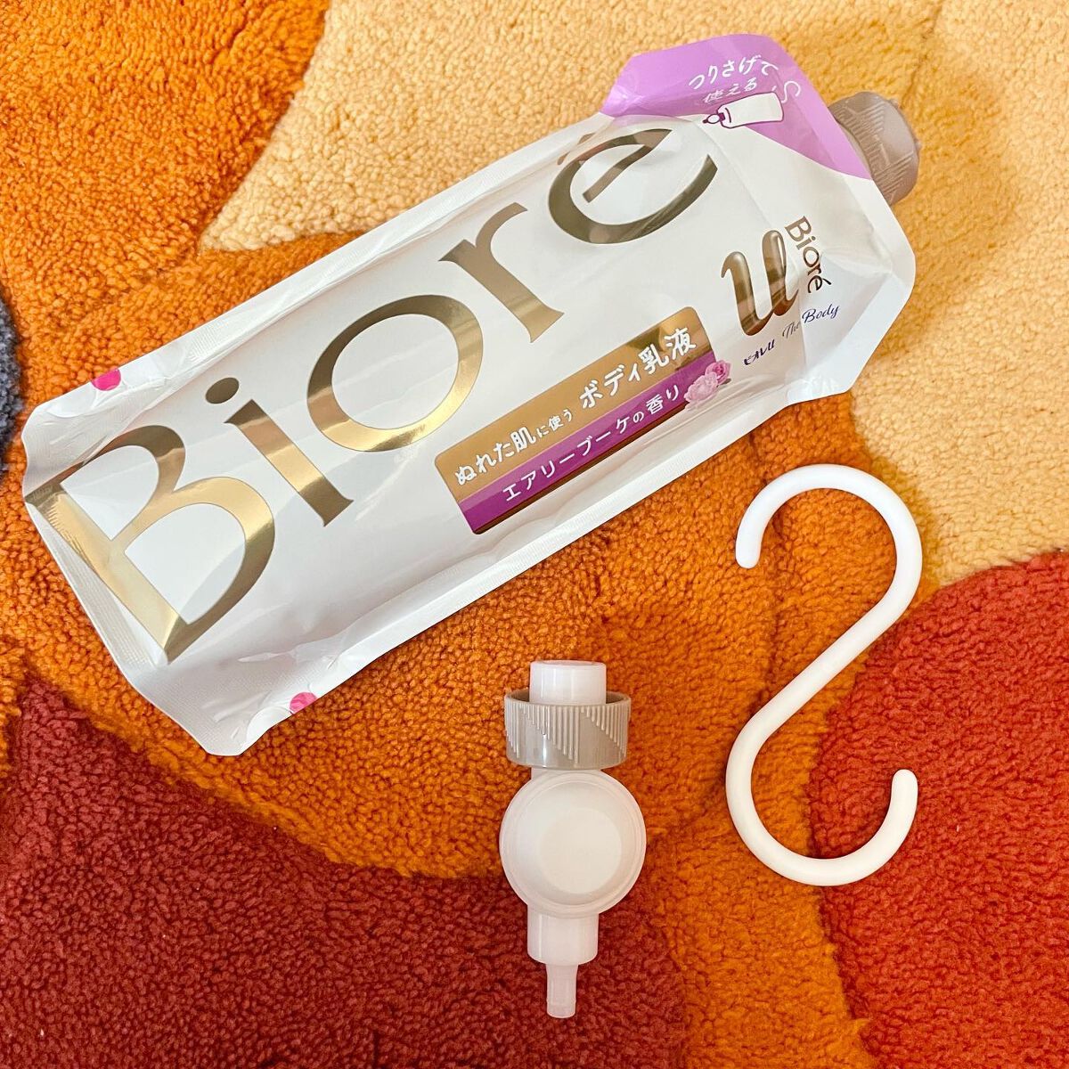 「ビオレuザボディぬれた肌に使うボディ乳液エアリーブーケの香り」服を着てる状態で全身にクリーム塗るのって面倒くさくないですか?この商品は、お風呂上がりに肌が濡れたまま使えて、とにかく便利です!テクスチャーは伸びが良く、少量でもスルスル全身に広...