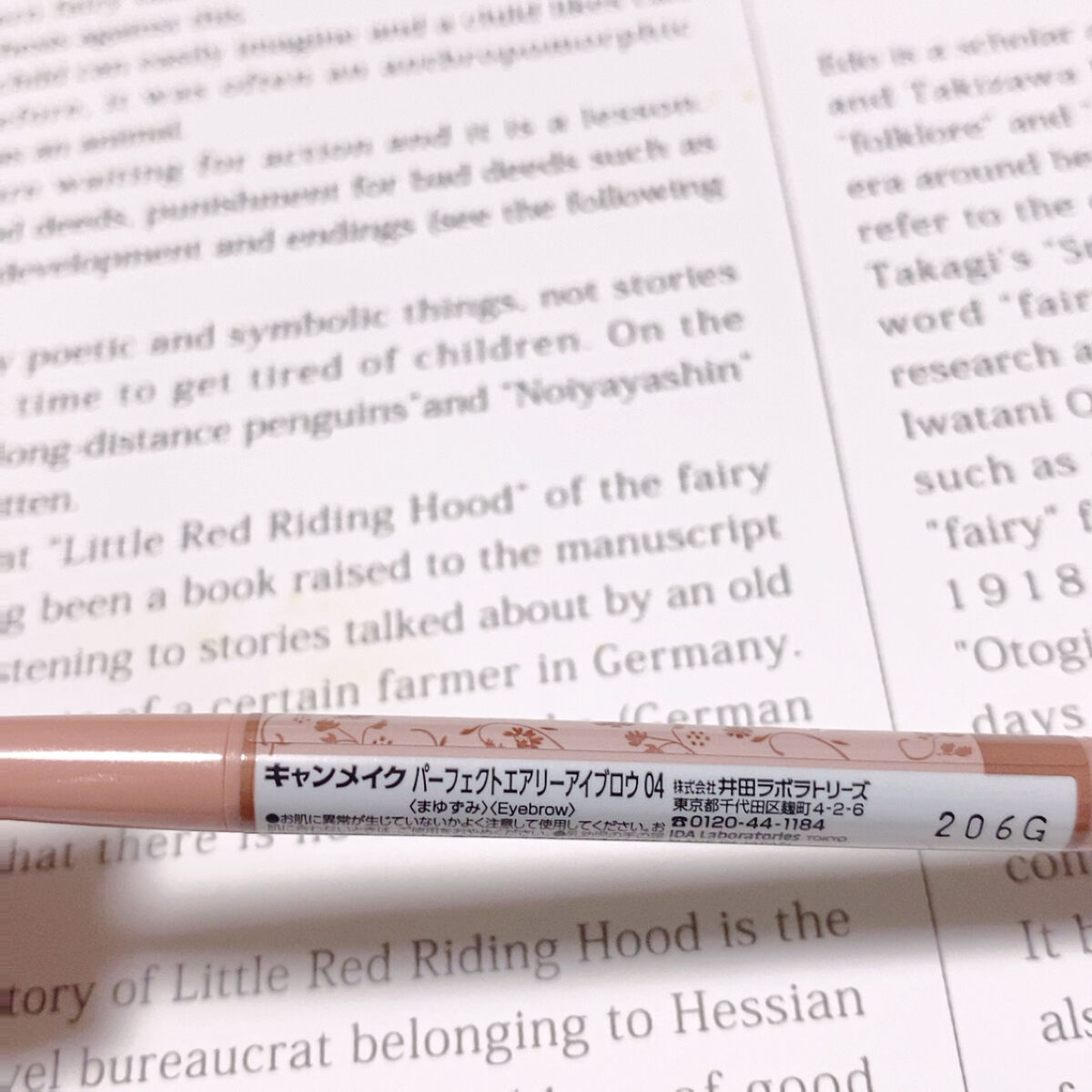 キャンメイクパーフェクトエアリーアイブロウ02 ナチュラルブラウン色は少し明るめ形が楕円形しているウォータープルーフ繰り出し式で出しても戻せる描きやすさも、まあまあ良き♪長さも12cmとポーチにも入るコンパクトで良き♪なんと言っても価格が49...