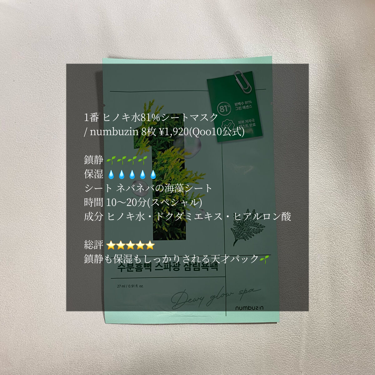 商品詳細情報numbuzin 1番 ヒノキ水81%シートマスク
