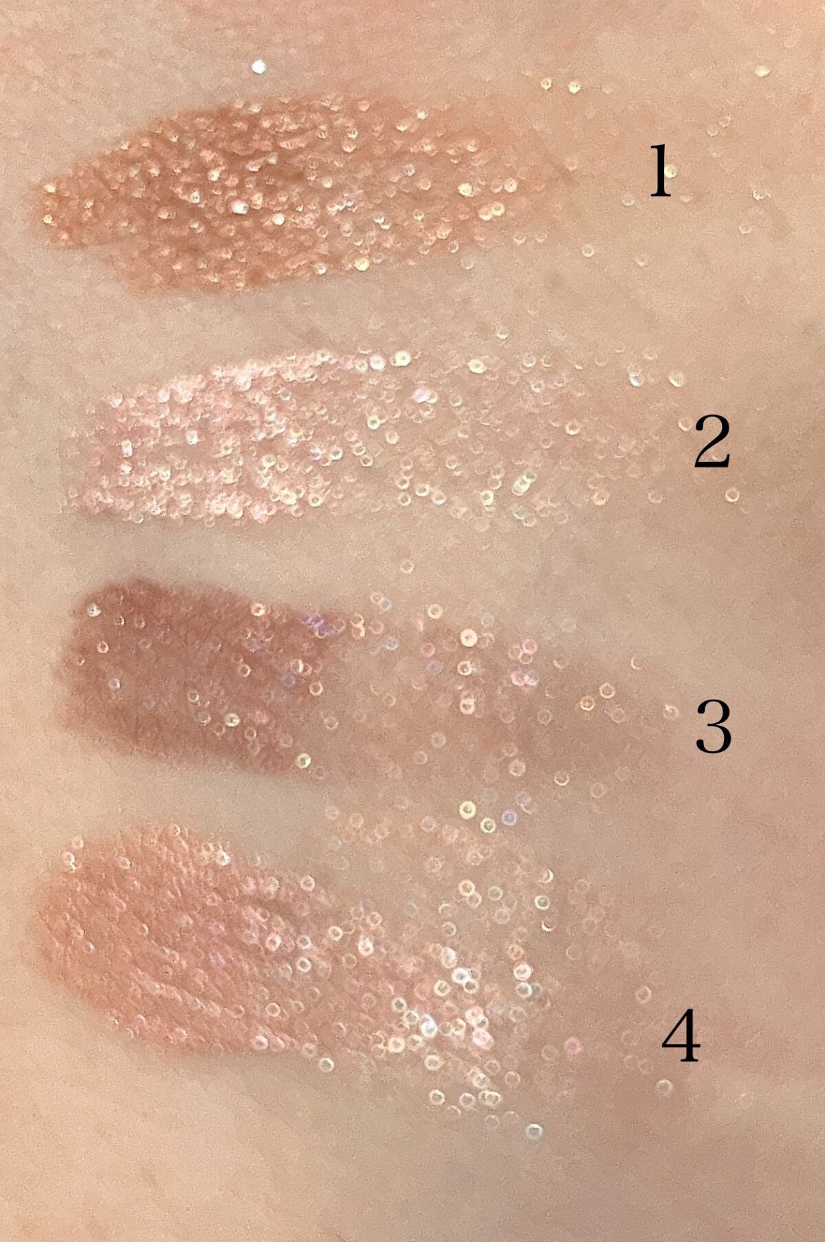 🌟BE286 ゴージャス姉妹 ピンクベージュにも、ゴールドにも見える不思議なかわいい色💕 涙袋にも、好きなシャドウに重ねてもかわいい色✨✨✨ 一つ持っていたらたくさん使えそう🔆 🌟BE330 マサラチャイ 可愛げのあるコーラルピンク✨ 一色だけでアイメイクしてもかわいい色です💕 多幸感ピンクが欲しいならこの色がおすすめです✨ 🌟BE384 コルク ローズとベージュを混ぜたような、なんとも言えない可愛さ✨ メインカラーにもミディアムカラーにも使える3色のなかで1番落ち着いた色です💫