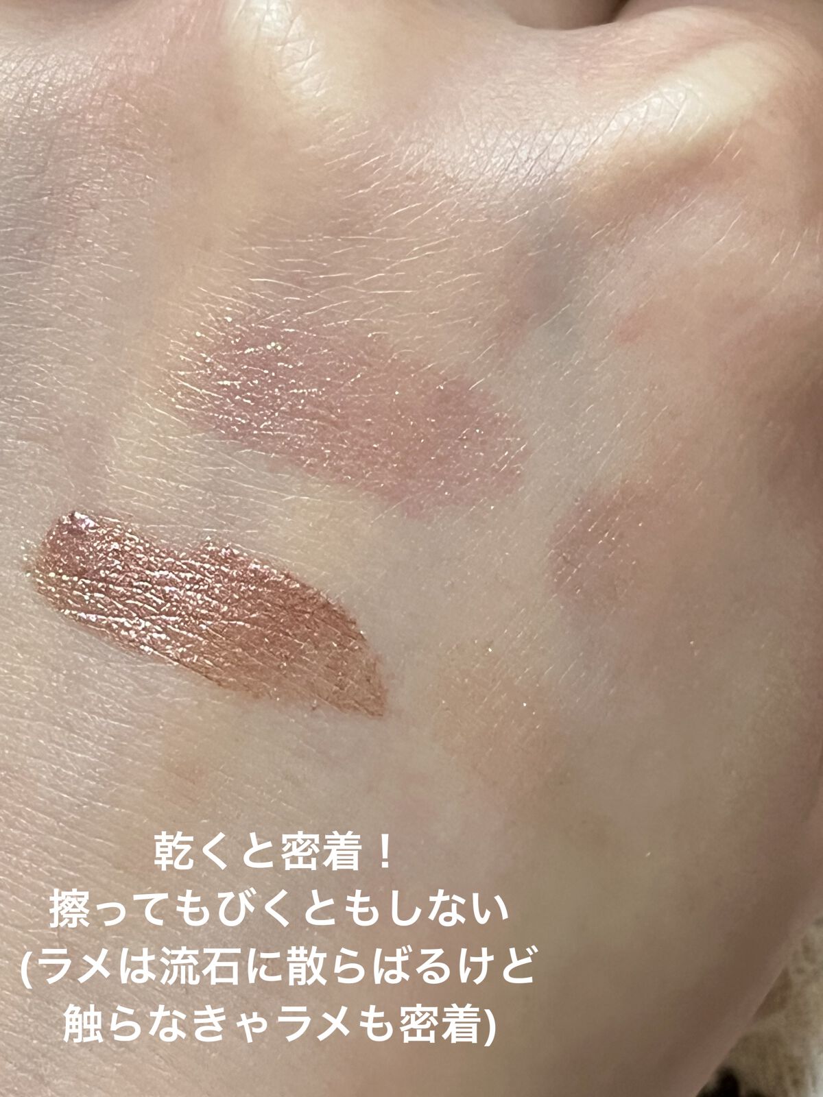 - リッチな輝きが長時間続く サラサラ仕上げのリキッドアイシャドウ 塗り心地はみずみずしくなめらかなのに、伸ばしていくうちにサラサラに変わる 魔法みたいなリキッドアイシャドウ♡ 速乾だからヨレにくく、ふたえのラインにたまりにくい! リキッドアイシャドウならではの輝きが長時間続きます。