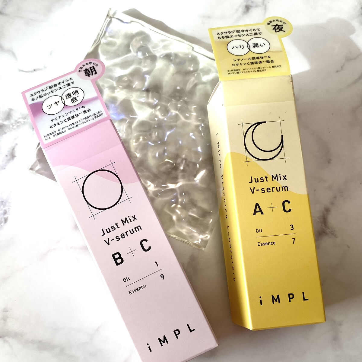 パケがかわいい〜!iMPLの優秀二層式美容液✨オイルインだからこれだけでもしっとりする保湿力🥹💓朝夜でスキンケア分けるのマイブームだから今のわたしに嬉しいアイテムだった✌︎iMPLJustMixV-serum朝B+C/夜A+C映えたねかわいい...