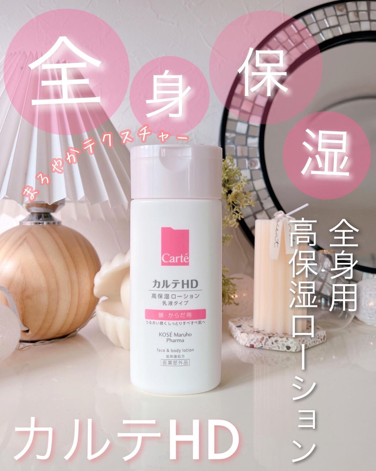- 【高保湿フェイス&ボディローション】 顔にもからだにも。しっとりやわらか肌つづく。 信頼の保水有効成分「ヘパリン類似物質HD※」配合、低刺激処方の高機能フェイス&ボディローションです。 ヘパリン類似物質HDが、気温・湿度の変化で乾燥しやすいからだの肌のうるおい構造(角層ラメラ)を立て直し、しっとりやわらか肌に導きます。 2種のこだわりオイル配合で、しっとりするのにべたつかず、なめらかにのびひろがる使用感。敏感な肌でもまさつによるストレスがなく、全身をうるおいで満たします。 カルテHDシリーズとしては初めてお子さま(3歳以上)にもお使いいただける商品。 ・ボトルタイプ(220mL) ・ポンプタイプ(410mL) ・つめかえ用(370mL)の3種でラインアップ。 ご自身の保湿に、ご家族や大切なかたの保湿に。みずみずしくなめらかなうるおいが全身を包み込むフェイス&ボディローションです。 ※保水有効成分ヘパリン類似物質のこと <販売名:HD フェイスボディL>