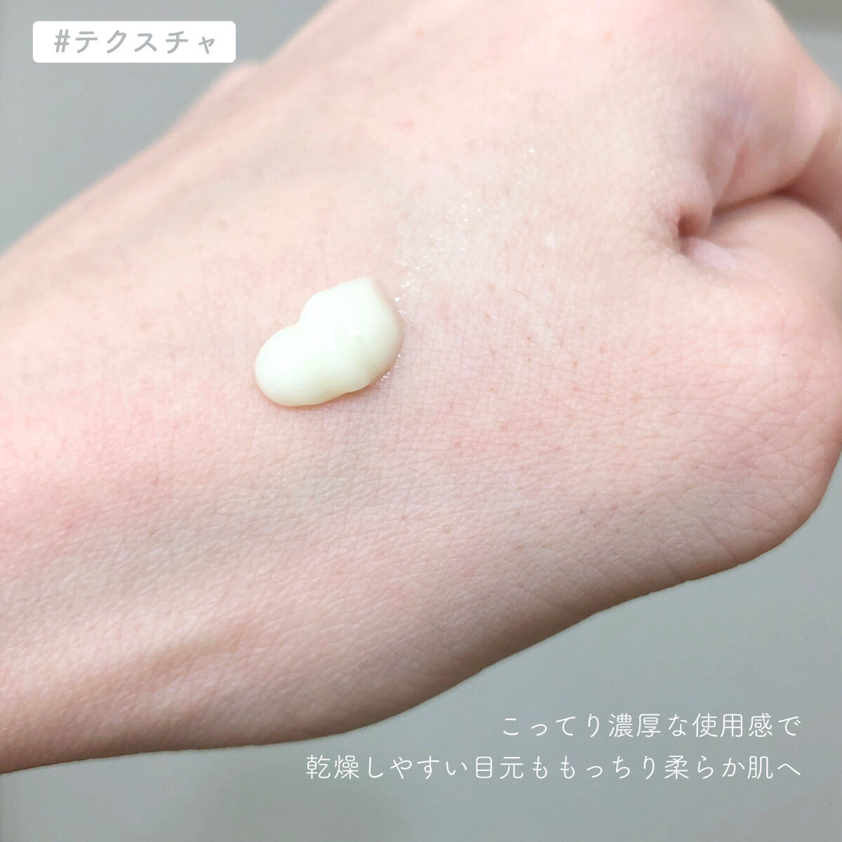 - 長時間うるおい持続処方。乾燥による小じわを目立たなくし(効能評価試験済み)、うるおってふっくらハリのある目元へ。 肌へのやさしさに配慮した、無香料・無着色・鉱物油フリー・アルコール(エタノール)フリー・パラベンフリー