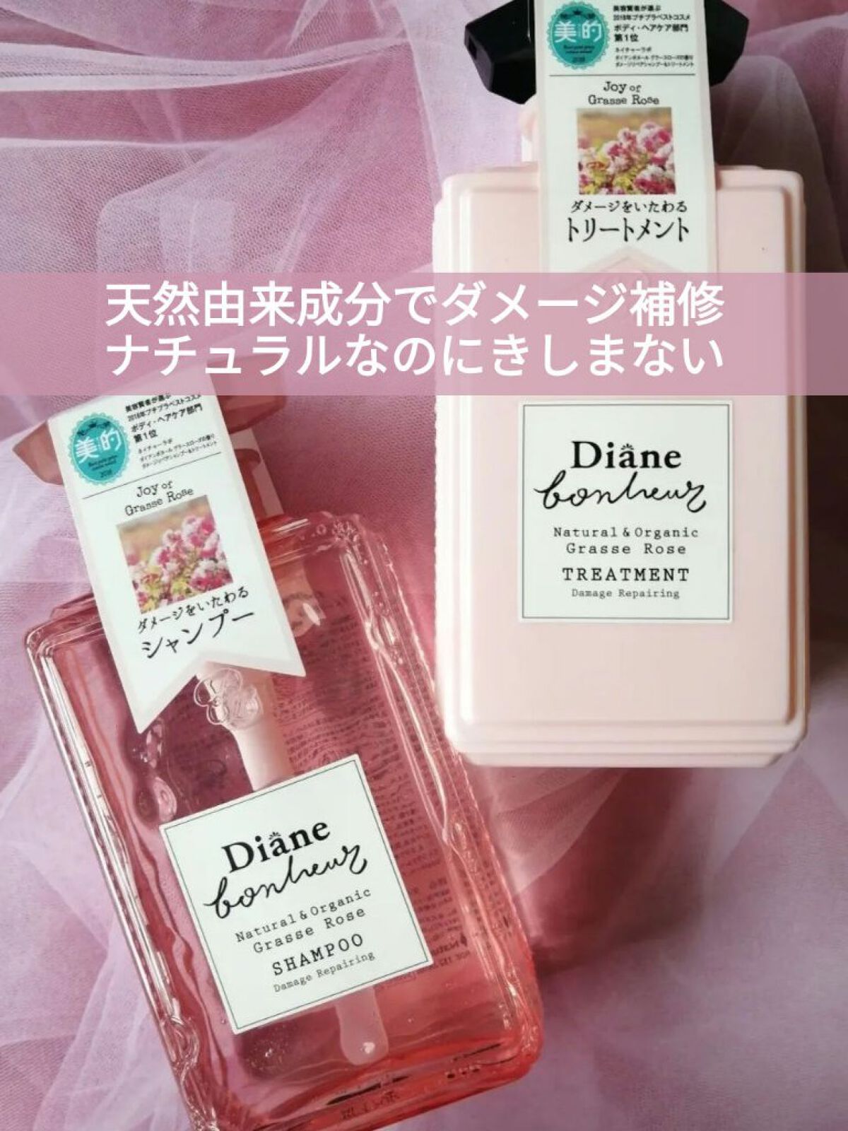 ダイアンボヌール グラースローズの香り/シャンプー&トリートメントです🌹気になっていたので、お試ししてみました😊『ナチュラルなのに、きしまない天然由来成分でダメージ補修乾燥によるパサつき、パーマ・カラーによるダメージ、うねりにお悩みの方に。髪...