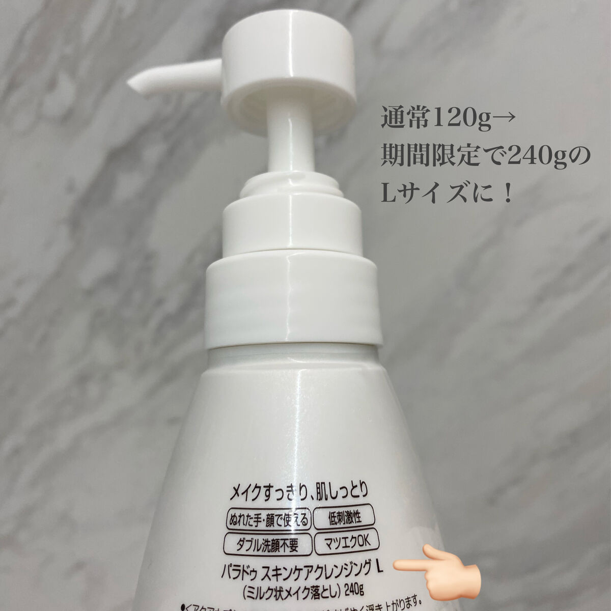 パラドゥ様のプレゼントキャンペーンでスキンケアクレンジングL当選しました🎉ミルク状メイク落としです。メイク落としの種類って沢山あるけど、私はミルクタイプが一番好きです❤肌に優しい感じがする。これスキンケアクレンジングってなってる‼...