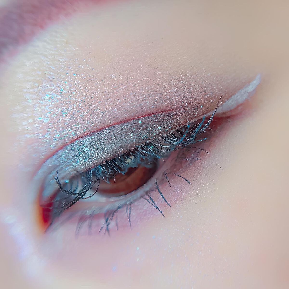 ピンクにグレージュも良いですね👌💗 今日は可愛らしい感じにしてみました💕 上下瞼黒目〜目頭側にラメを塗ってキラキラさせております🤩 目尻はマットのピンクを濃いめに重ねて💗 グレージュのアイライナーと相性◎