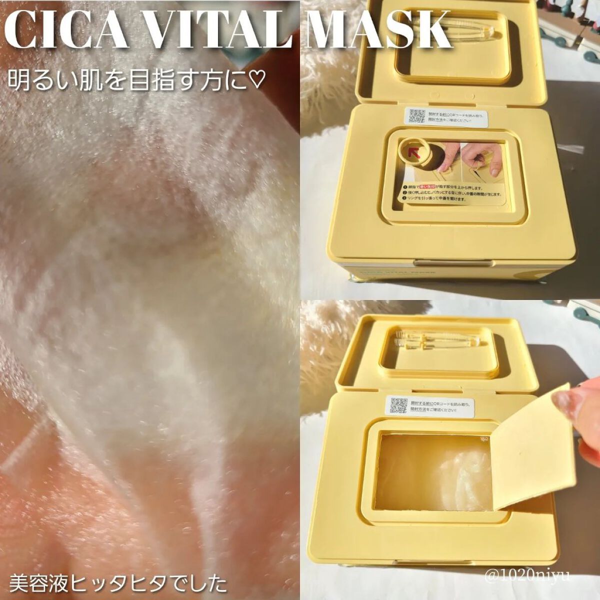 ⋆⋆💛VTシカバイタルマスク30枚入り確かAmazonで購入。こういう薄くてさっぱり系のマスク朝にするの好き✨️シカマスクは大丈夫なのにビタミンCが入ってるからなのか少しヒリピリした、もう慣れたけどリードル入ってたけど痛いんかな?💦ビビって怖...