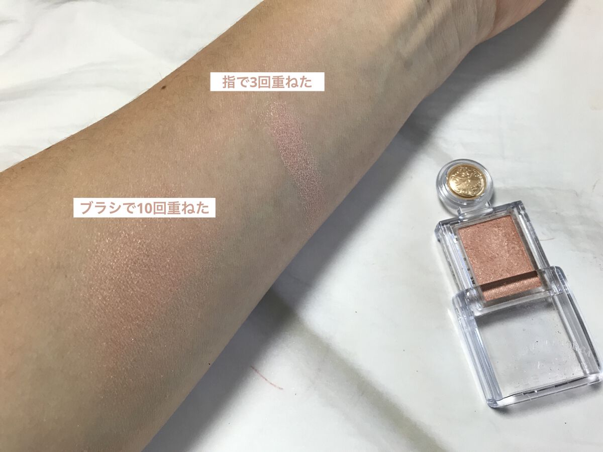 指でとってぬるタイプのアイシャドウで、指で押さえたら"むにっ"ってなるぐらい柔らかいです。 細かいラメが入ってて、ぬったらまぶたがキラキラして綺麗でした。 ピンクといっても落ち着いたピンクなのでどんな肌タイプの人でも使えそうな感じ。 単色で使っても他のアイシャドウと重ねても⭕️ 便利に使えそうなアイシャドウでした。
