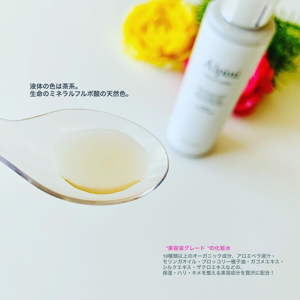乾燥・艶・ハリ・キメなど、エイジングサインにアプローチする、オーガニックな無添加保湿化粧水です🙋💕 沖縄で自然栽培された月桃のフローラルウォーター(芳香蒸留水)をメインに配合🎵 少しとろみのある、薄茶色がかったテクスチャーのローションです🙋💕 この薄茶色なのは、フルボ酸の天然色素なのだそう!