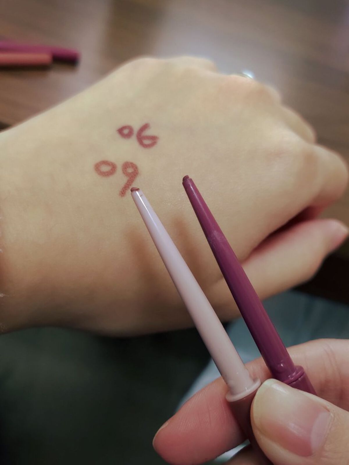 もう10回くらいリピートしてる商品です。 毎回違う会社のを試そうとするのですが、安くて高品質な為なかなか手放せず… 使い心地は少し肌に当てただけでスルスル描けるのがとても良いです。芯を出しすぎたら折れてしまうので注意は必要です⚠️ 09番はイエベの私に合っていて、買って満足しております😊