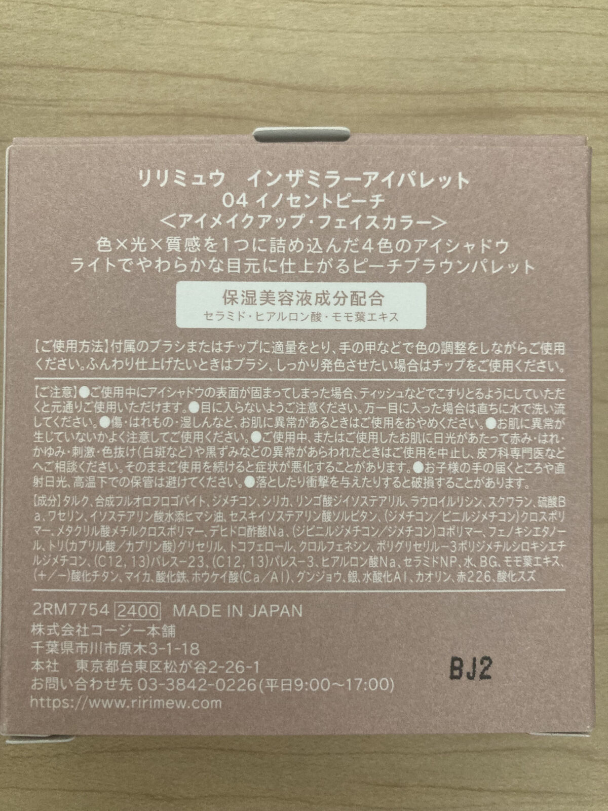 - 2021年3月15日(月)予約販売開始 色×光×質感を1つに詰め込み、毎日のアイメイクのバリエー ションを膨らませる4色のアイシャドウパレット。 ・発色・質感を調整しやすいチップ&ブラシ ふんわり仕上げたいときはブラシ しっかり発色させたいときはチップを その日の気分に合わせたアイメイクが楽しめる ・ 毎日のメイクが楽しくなる4つのカラー ・こだわりの3つの質感 シマー・プリズム・マットのテクスチャー それぞれのカラーがしっかり色づきピタッと密着 ●保湿美容液成分:セラミド・ヒアルロン酸・モモ葉エキス 配合。 ●ミラー・チップ&ブラシ付き。
