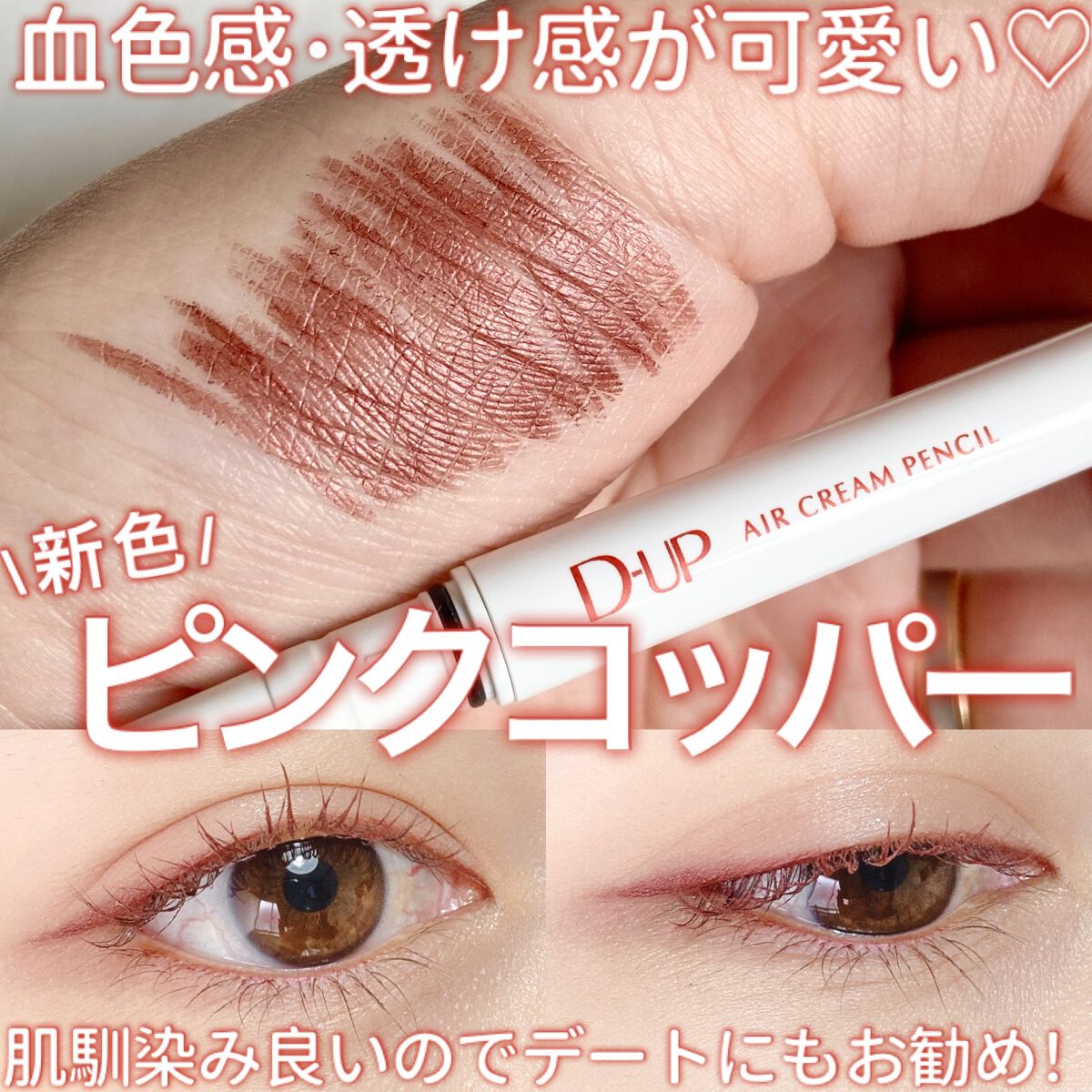 \この冬だけの限定色💖/◯使用コスメ◯D-UP エアクリームペンシルピンクコッパー1.3mmx2.5mmの楕円芯なので細い線から太い線、また直線から曲線まで自由自在にかけます☺️描き心地もスルスルとしていて使いやすいです◎目尻に使用しても可愛...