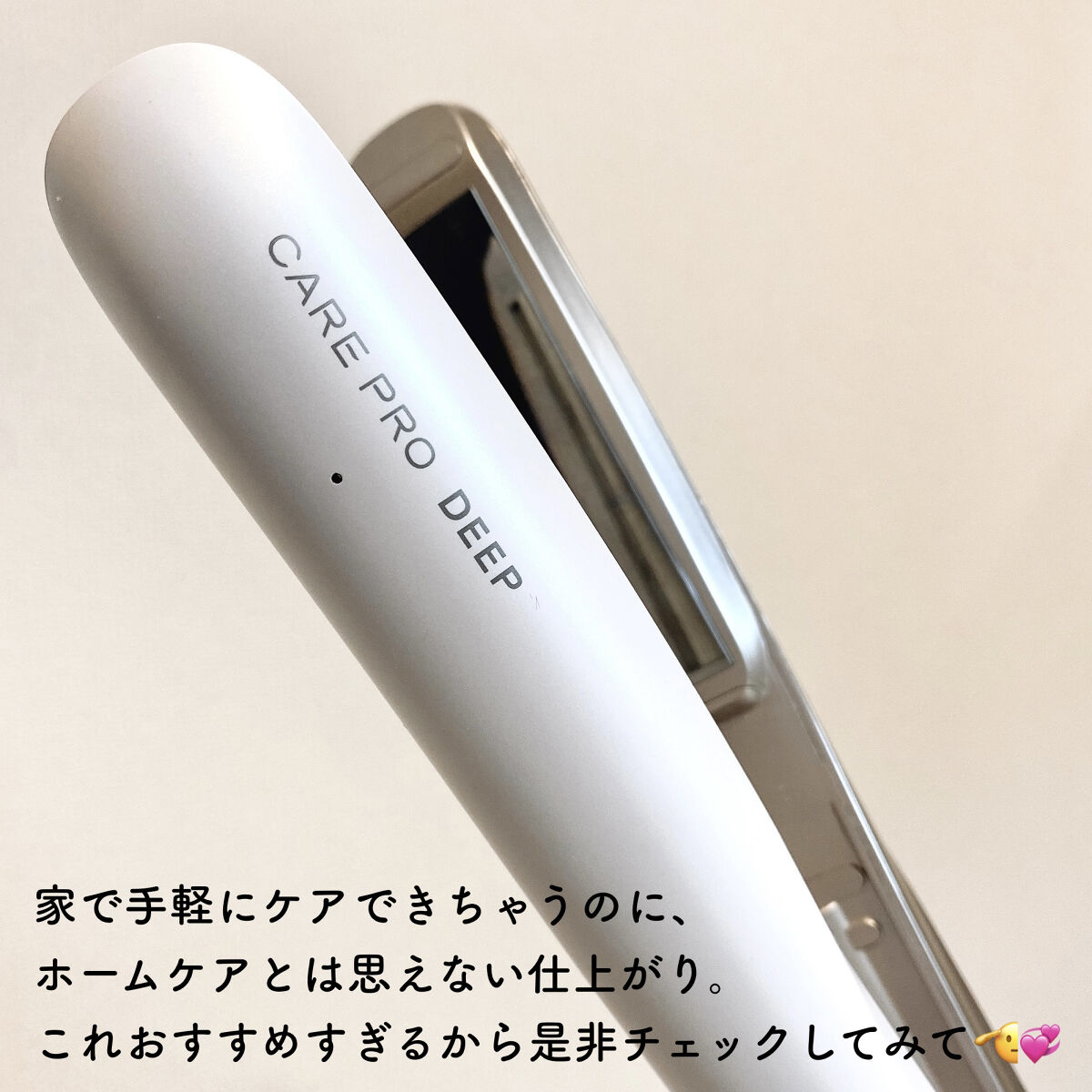 - 超音波アイロンの代表ブランドCARE PROから発売されたホームケア専用品です。ご自宅にいながら、いつものトリートメントでサラサラで艶のある髪質を実現します。 ヘアサロンで使用されているケアプロの「トリートメント浸透促進効果」を搭載し、万が一の水没にも耐える防水機能(IPX7)を搭載。また、サイズをコンパクトにし曲線的なデザインによって、セルフケア時の使い勝手が最適化されています。カラーは高級感を漂わせた、気品のあるエレガントなプラチアホワイトxシルバー。製品としての美しさにも徹底してこだわっています。