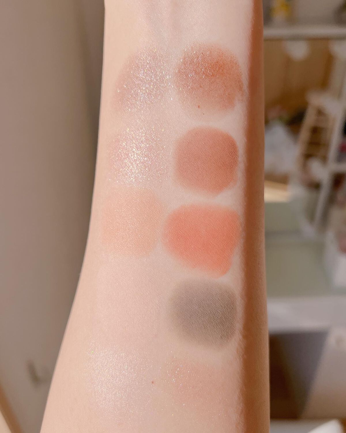 キメの細かいパウダーが肌にするっと溶け込むような使い心地✨ パールハイライトは華やかにきらめくシャンパンカラー。鼻筋や頬の高い位置に🫧✨ 繊細なきらめきがとても綺麗💓 ハイライトで透明感が出て、シェーディングはナチュラルに引き締めてくれてこのパレット重宝してる🥹💖