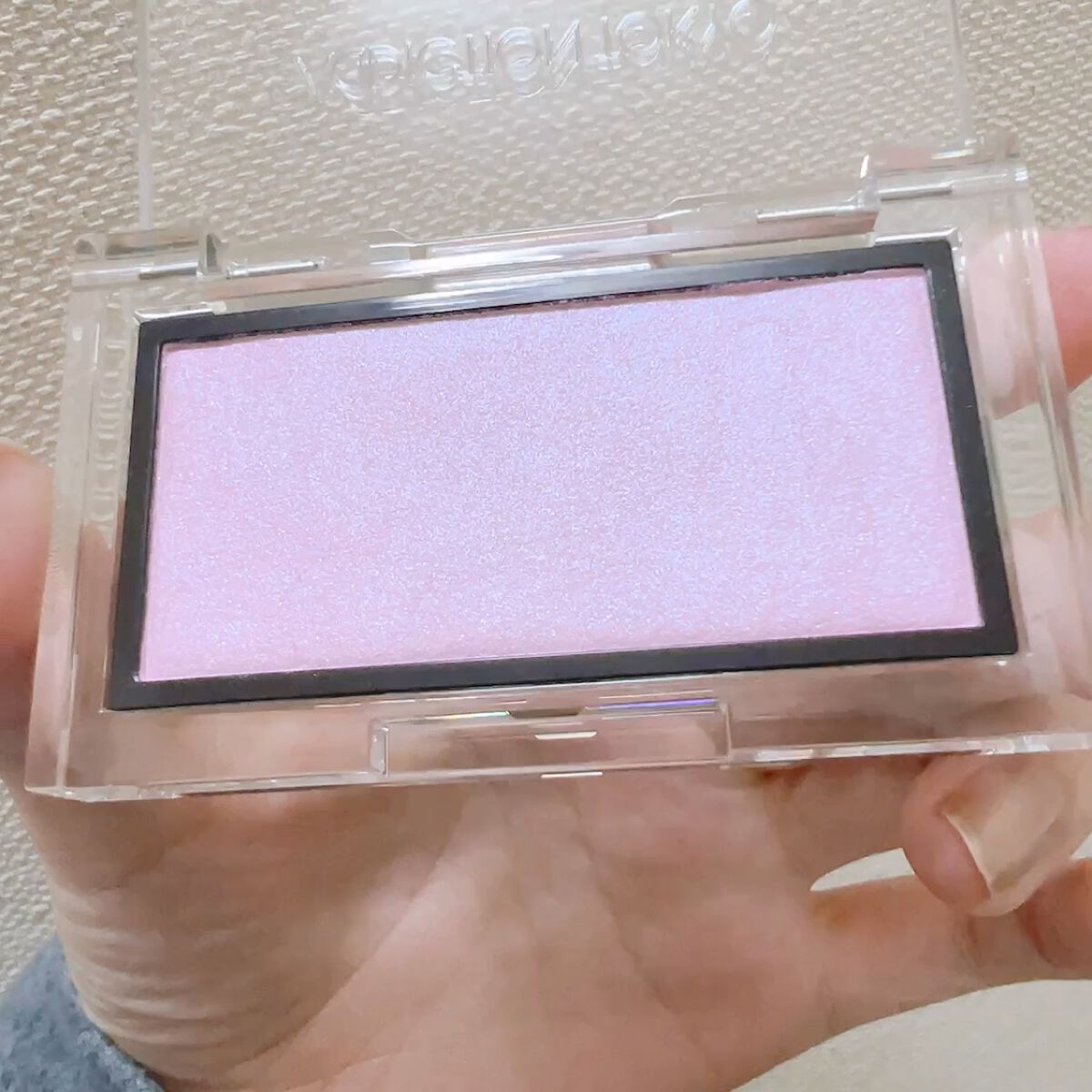 普段はチークはつけていないのですが、 ちょっとした色味足しとしてこちらにしました 細かい偏光ピンクとブルーのラメが とてもかわいいです◎ 透明感も増して、光の加減で 血色も良く見えるのでとても気に入りました! 本来は重ねて使用するので、 使い方としては違うかもしれませんが わたしはとても気に入っています◎ これは人気が出るわけだ!