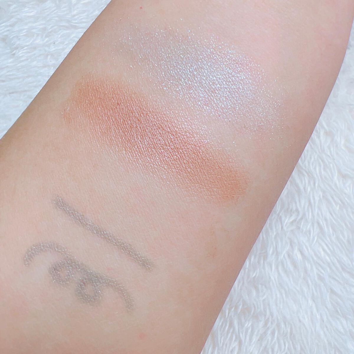 水色ラメとブラウンの不思議な組み合わせ でも可愛い! 他の色より芯が硬めで、発色させようとしてゴリゴリ描いてしまう…瞼に負担かかってそう💦 この色のシャドウの時に、儚い感をプラスするためにまつ毛も薄めの色にしてみてるどうかな…