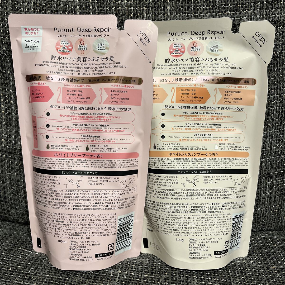 ※2023年使用品シャントリ、ヘアオイル・商品名Purunt.(プルント)ディープリペア 美容液シャンプー/トリートメント詰め替え 美容液ヘアオイル・値段シャントリ詰め替え定価1210円(605円で購入)ヘアオイル定価1540円(770円で購...