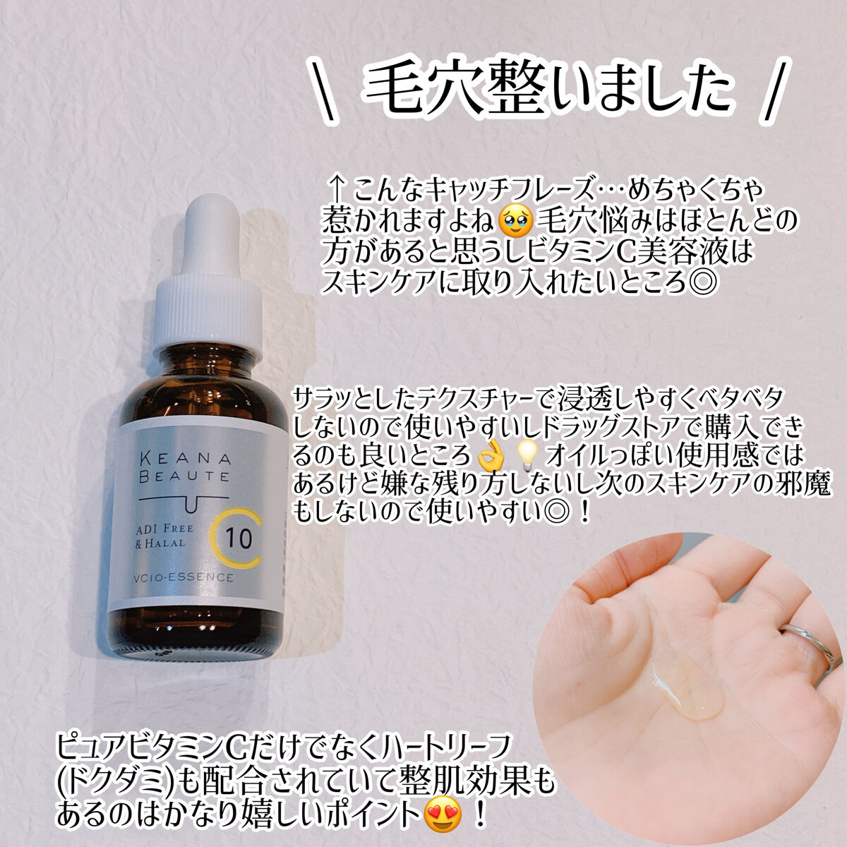 こんにちは🙋🏻♀️今回はビタミンC美容液の商品紹介をします!!☑︎ケアナボーテケアナボーテVC10濃美容液30ml/¥1,980ピュアビタミンCアスコルビン酸(保湿)とハーフリーフドクダミ(整肌)配合で、毛穴を目立ちにくくし(*1)、お肌の...