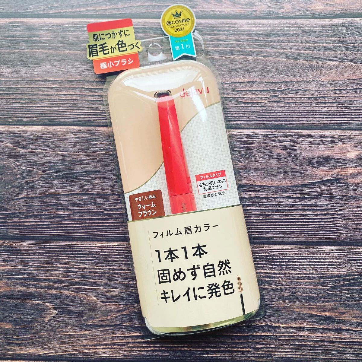 1本1本色づき固まらない「フィルム眉カラー」 塗りやすい極小ブラシで簡単垢抜け✨ デジャヴュ独自の薄膜フィルムを採用。 毛がパリッと固まらず、タバやダマのないふんわり自然な眉に。 フィルムタイプで速乾性が高く、皮脂・汗・こすれに強いのに、お湯だけで簡単に落とせます✨