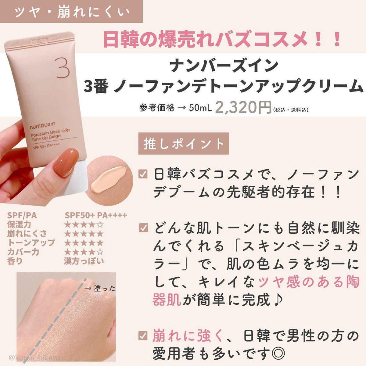この中でも、ご相談いただいた時にまずオススメするのがジョンセンムル🙌 カラーや肌質など、ご自身にあったものを選べるのですが、私はトーンアップを使ってます💕 全体的なバランスが良いので、ひかるの中でも使用頻度が高いアイテムです💪✨ パパパッとメイクを済ませたいときや、ノーファンデな日にはナンバーズイン😍 これあると便利ですよ〜💓 商品名の通り、陶器肌に仕上がるし、マスクに本当に付きにくい✨ 保湿力やツヤ感、テクスチャーやカバー力など、それぞれ星や画像を参考に比較して、お買い物の参考に少しでもなれば嬉しいです🙌💕