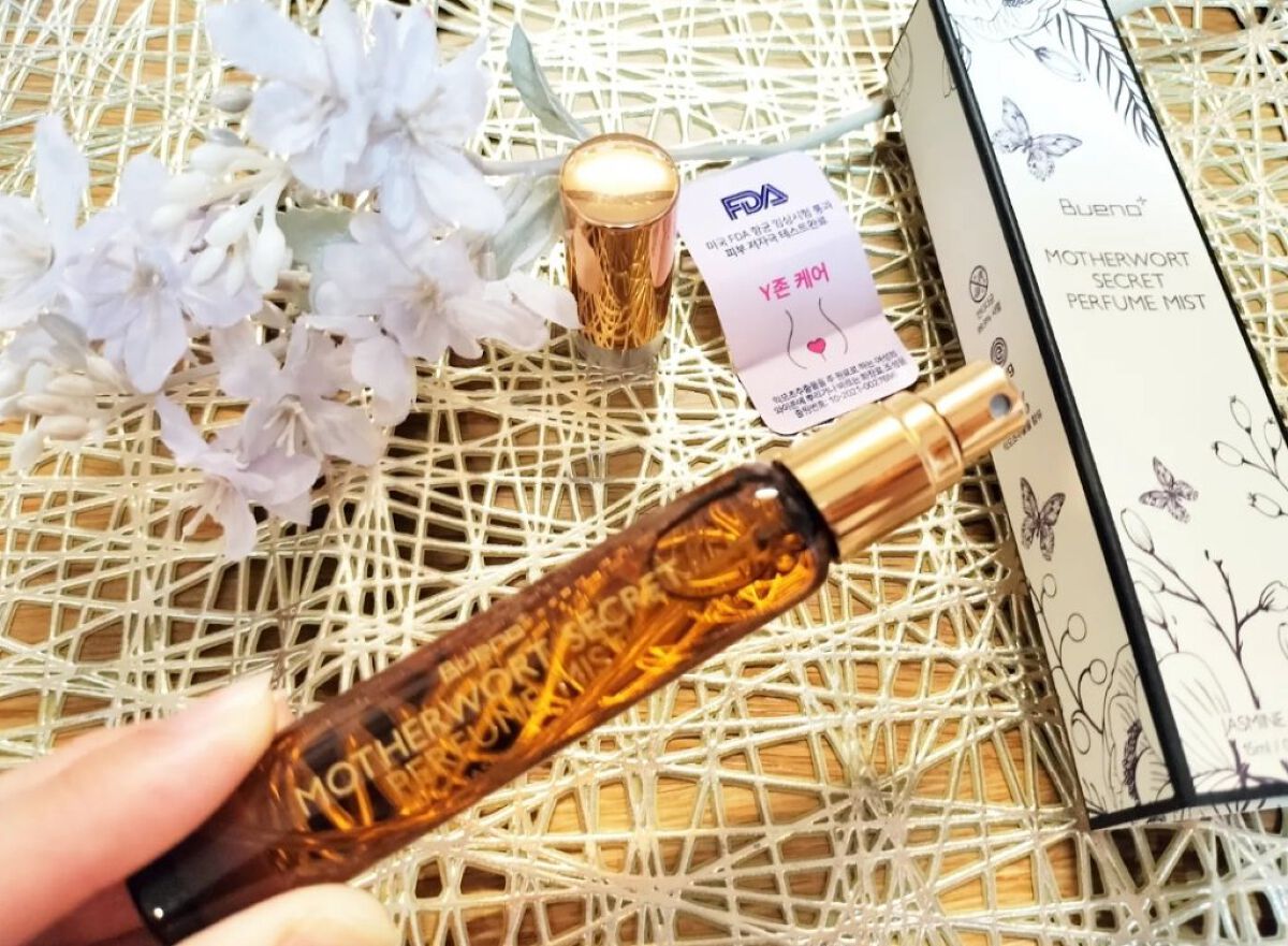 マザーワートシークレット パフュームミストは、 香水のように持ち歩く プレミアム女性清潔剤 デリケートゾーンケアミストで、 デリケートゾーンのニオイが 気になるさまざまな場所に使えます! 無害な成分で安心 不妊の改善 子宮環境の改善 血液循環の改善 ホルモンバランスの調節 など 女性の健康に有益な ヤクモソウ成分が78%含まれています カビ菌類を死滅させます カンジダ菌99.9%殺菌
