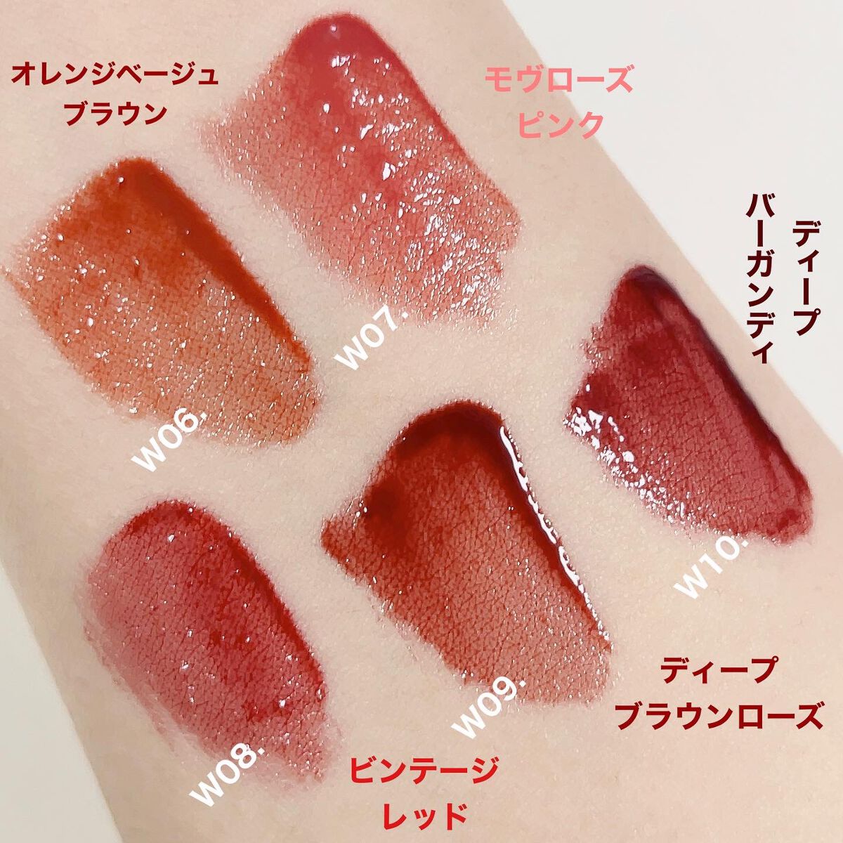 - 絶妙なツヤ感で潤いと色持ちが持続。たっぷり水分を含んだグロッシーテクスチャーが上質なツヤ感リップメイクを完成させてくれます。