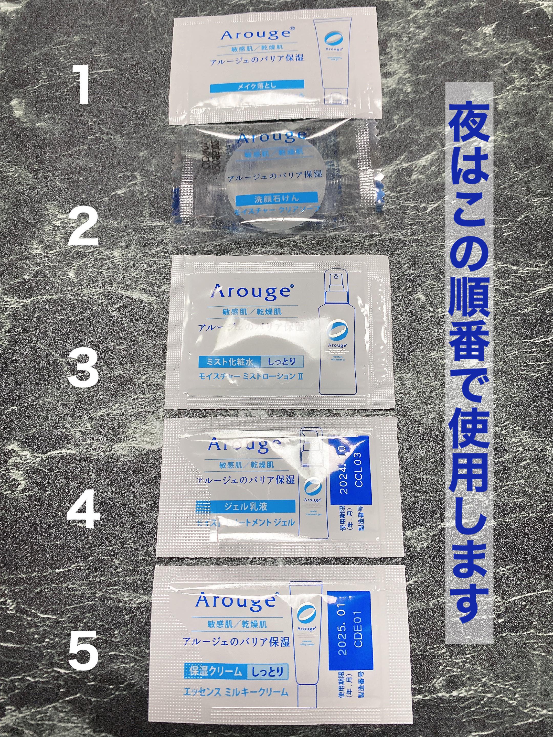 ⭐️アルージェお試しセット¥550⭐️メイク落としから保湿まで、敏感肌のためのお試しセットメイク落とし・ソープの洗顔アイテムと、化粧水・ジェル乳液・クリームの保湿アイテムが2日分入った敏感肌のためのお試しセット。旅行用にもおすすめ○モイストク...