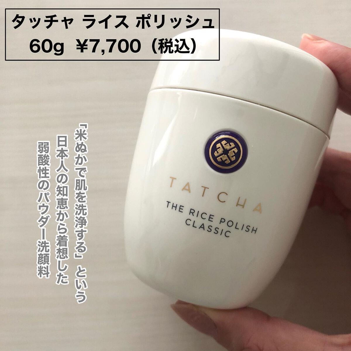 コスメラウンジの企画で、タッチャさんから商品を提供いただきました。TATCHA(タッチャ)ライスポリッシュジェントル米ぬか*¹&米粉*²で洗い清めるパウダー洗顔料パウダーの1/3は食用の米粉が採用されているそう。保湿をサポートしながら、古い角...